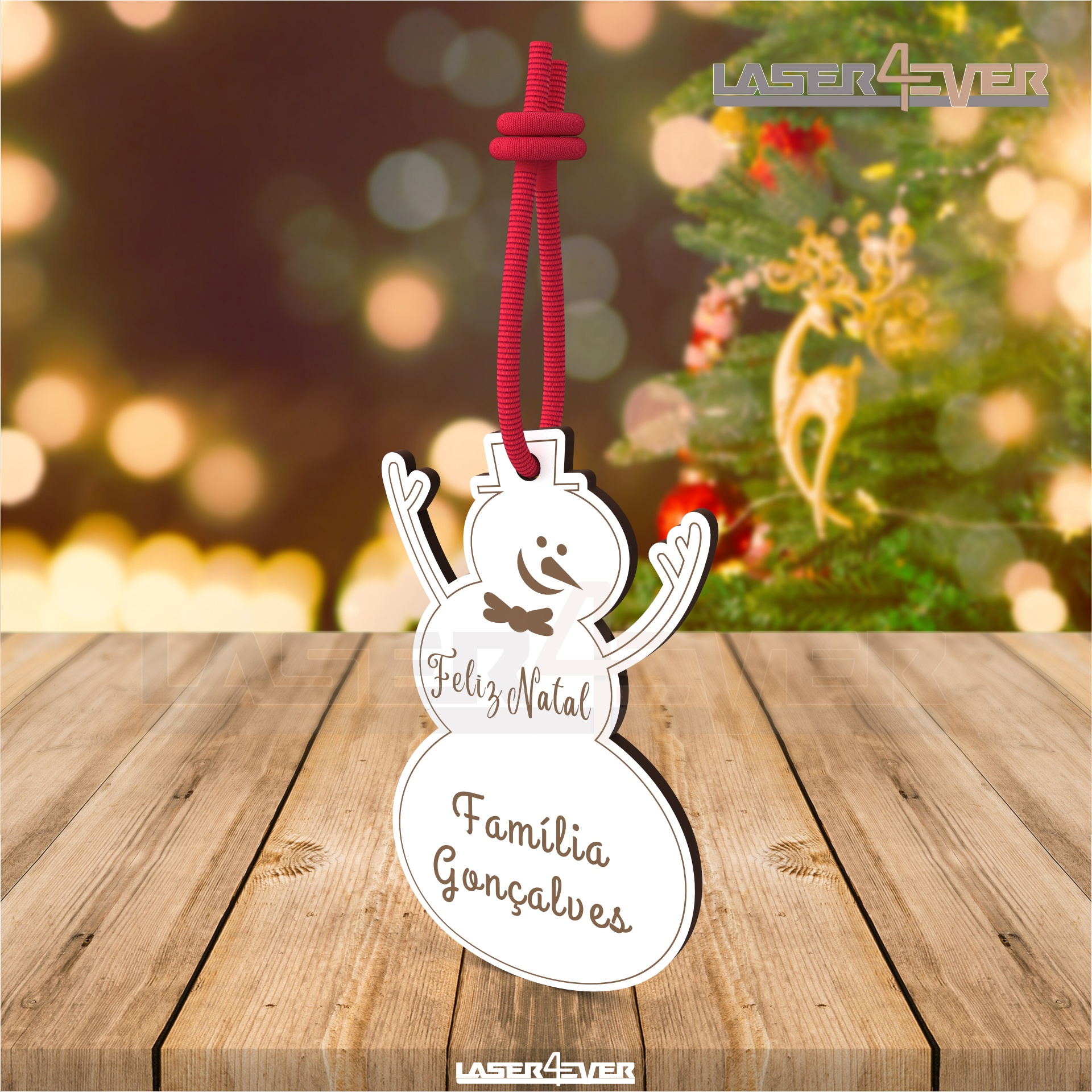 Bola de Natal - Boneco de Neve Nome Família Personalizado