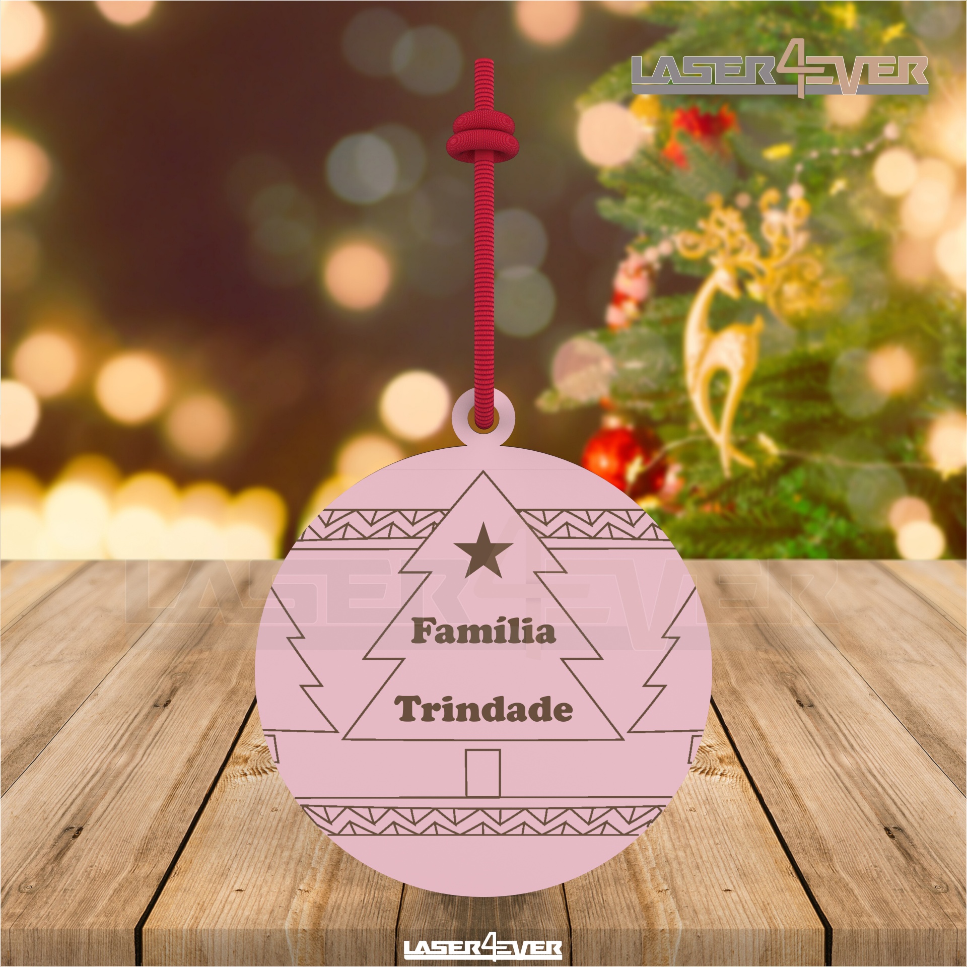 Bola de Natal - Pinheiros Nome Família Personalizado