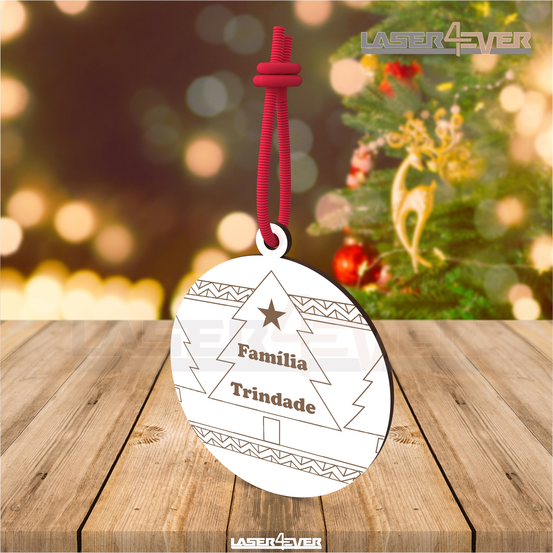 Bola de Natal - Pinheiros Nome de Família Personalizado