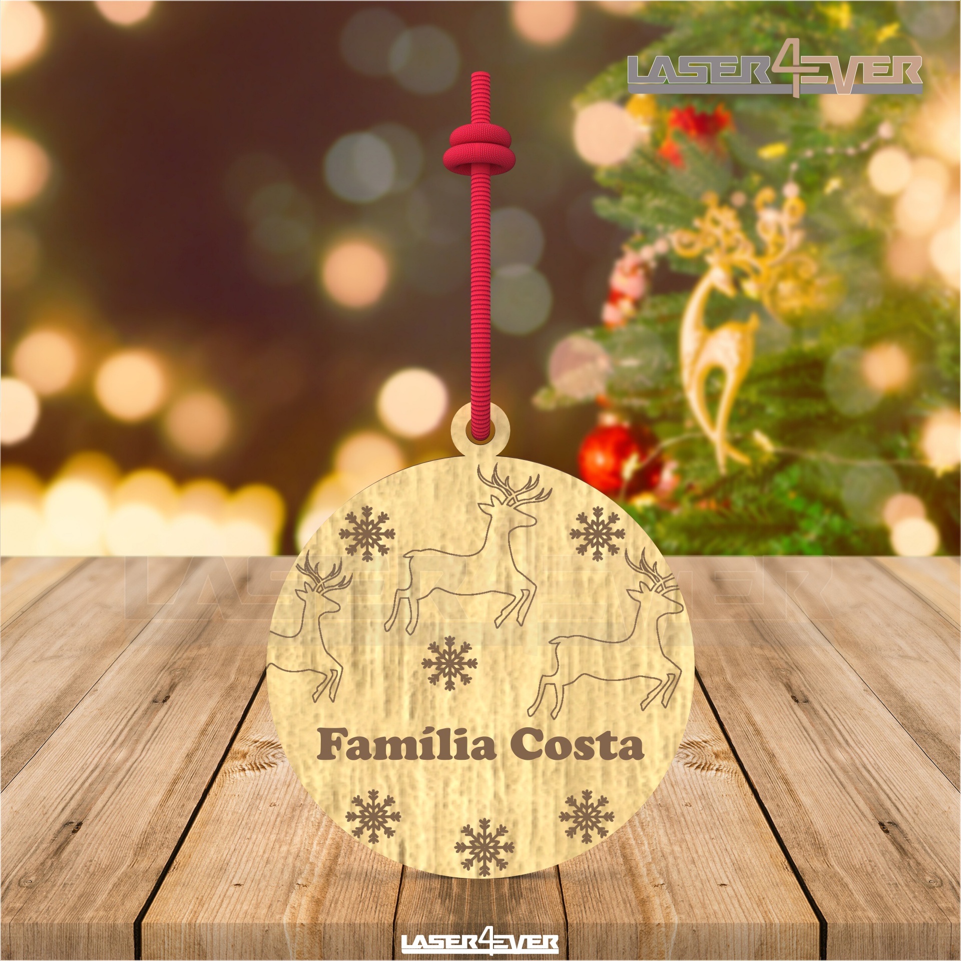 Bola de Natal - Renas Nome Família Personalizado