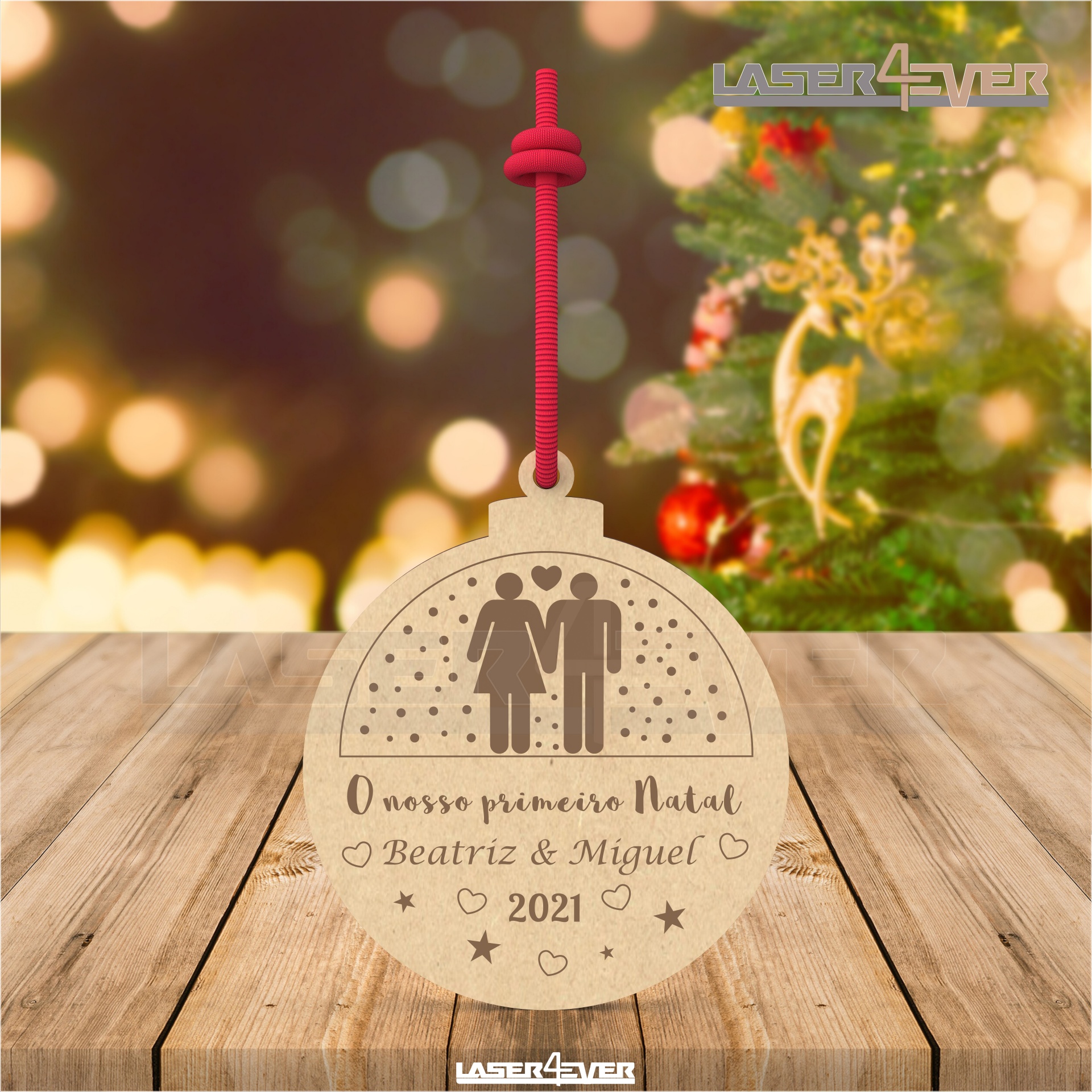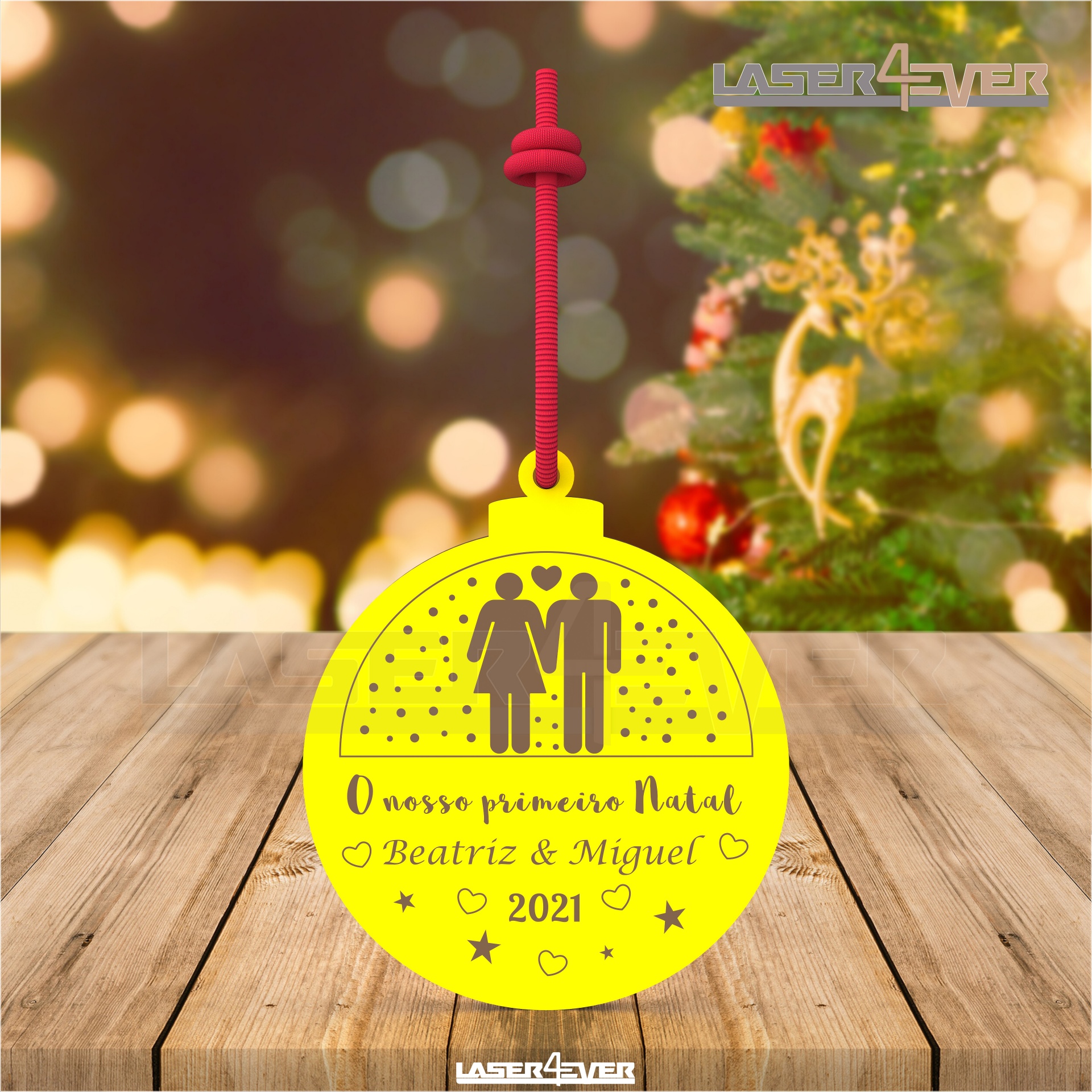 Bola de Natal - Casal O nosso primeiro Natal com Nomes e Ano Personalizado