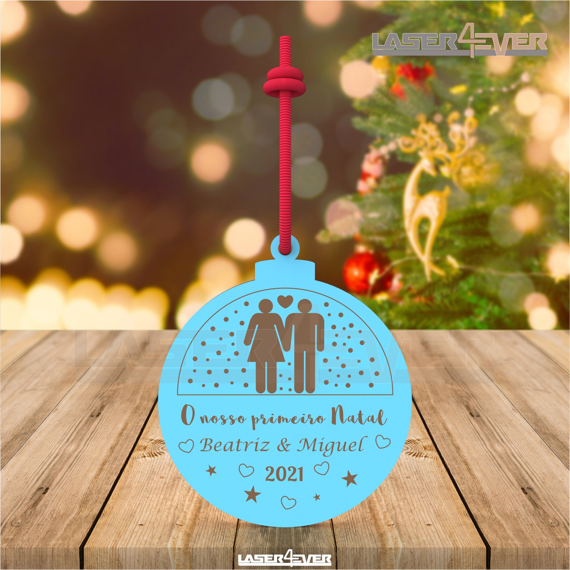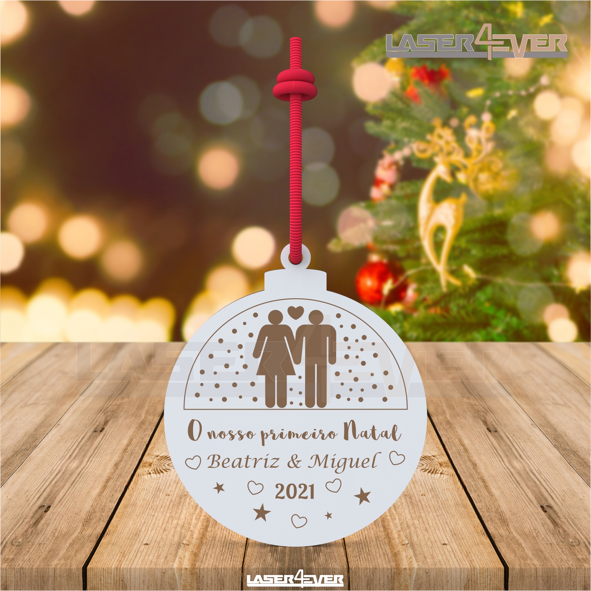 Bola de Natal - Casal O nosso primeiro Natal Nomes e Ano Personalizado