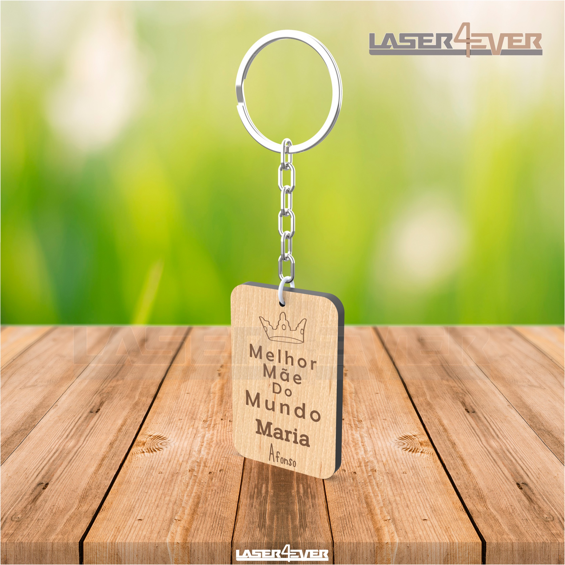 Porta-Chaves Dia da Mãe, em madeira com nome e data personalizável.