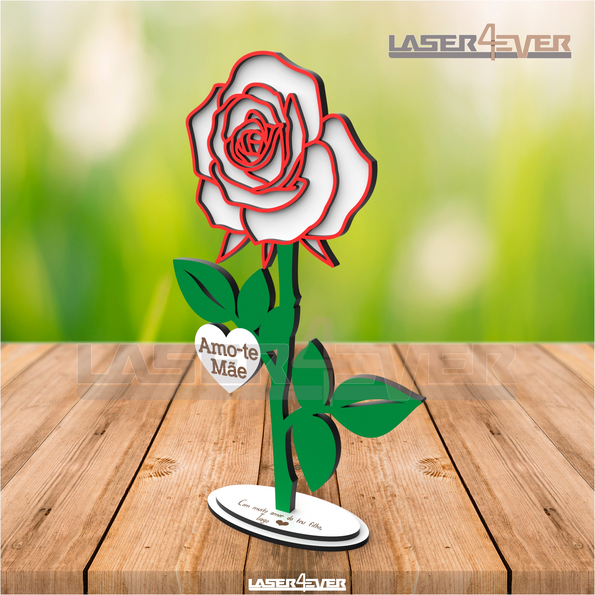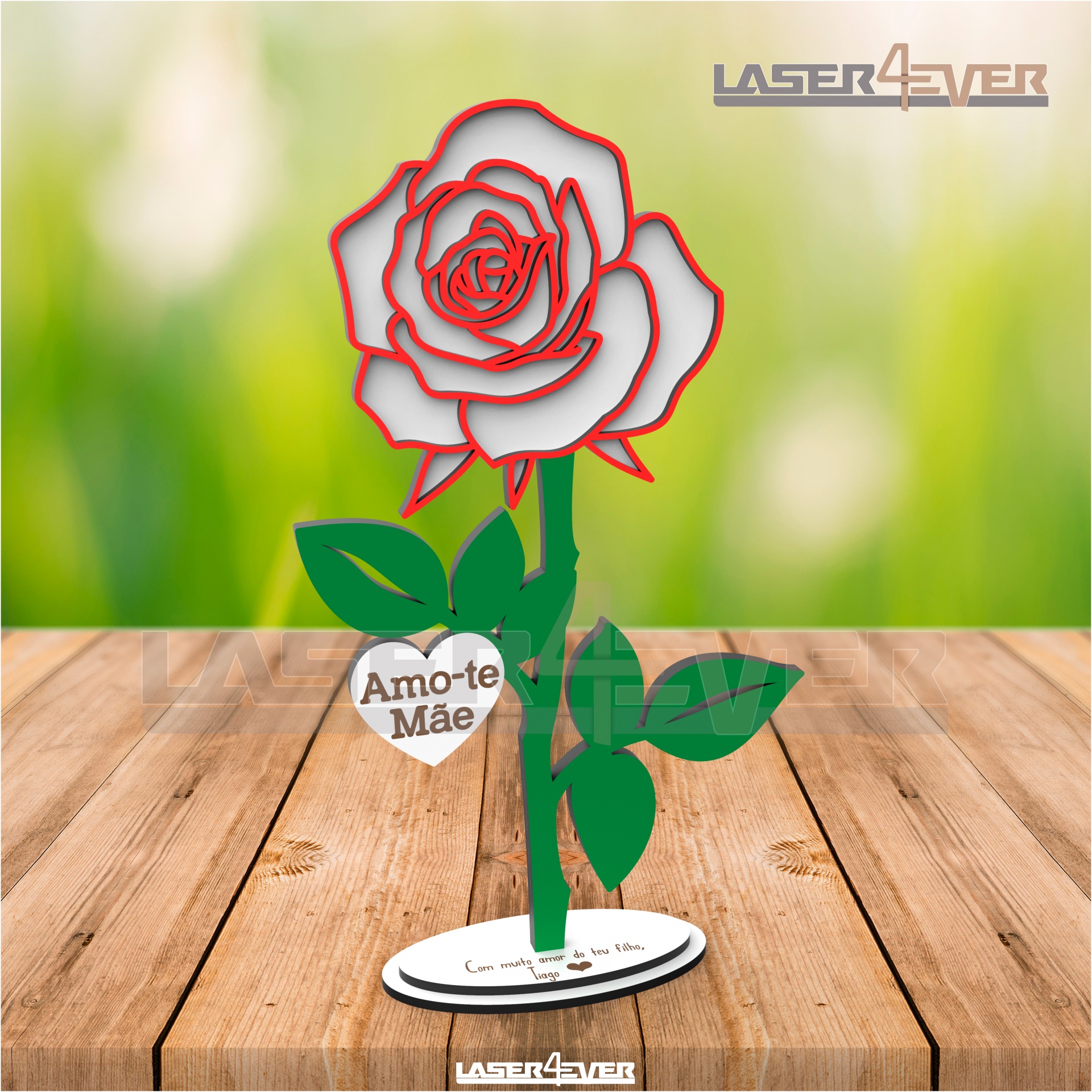 Rosa - Amo-te Mãe - Personalize com Nome - em Madeira