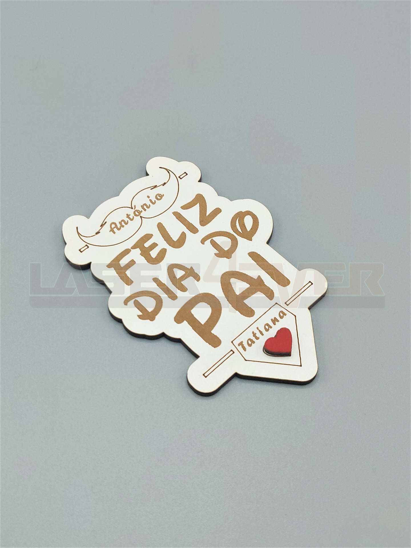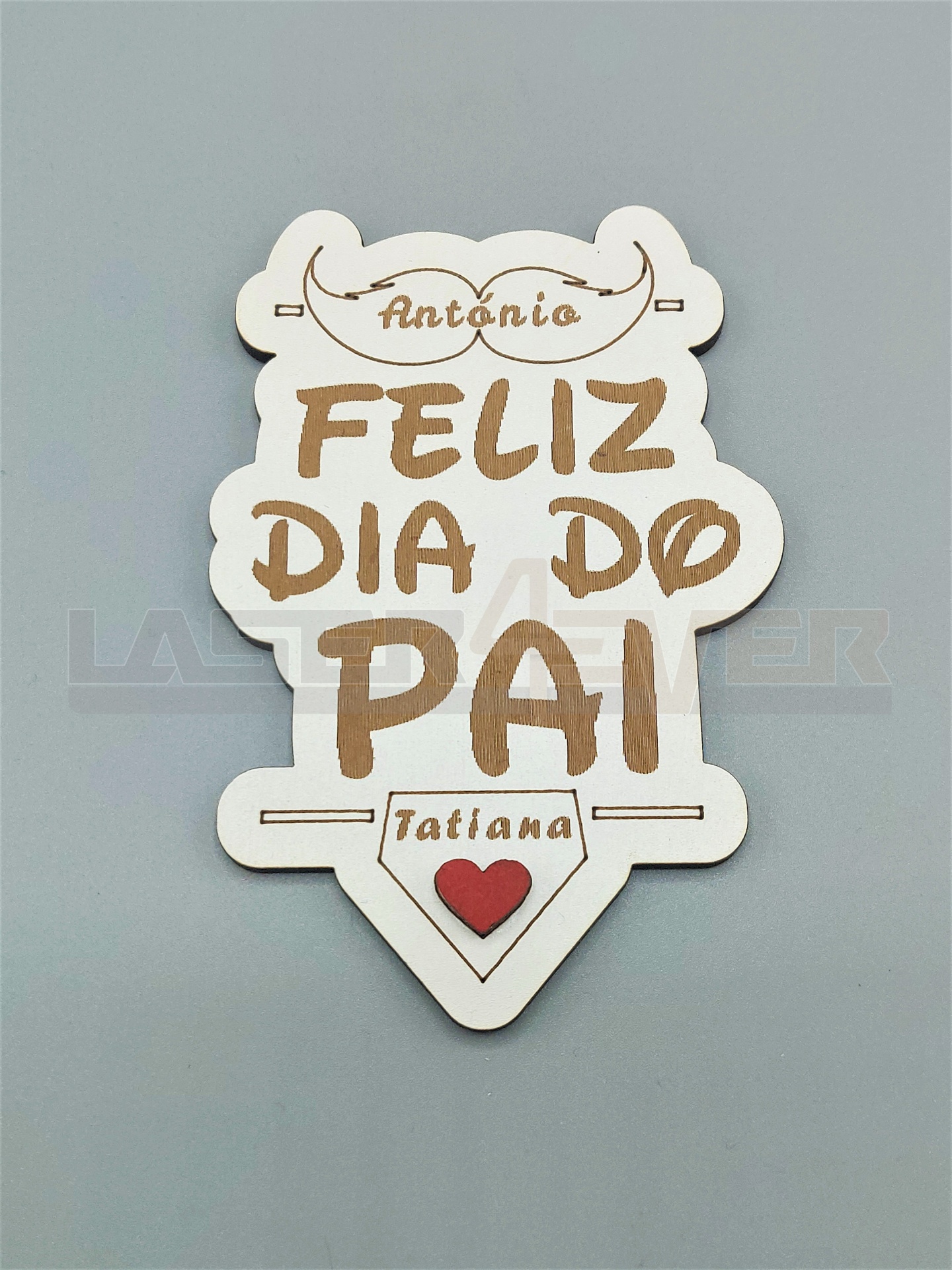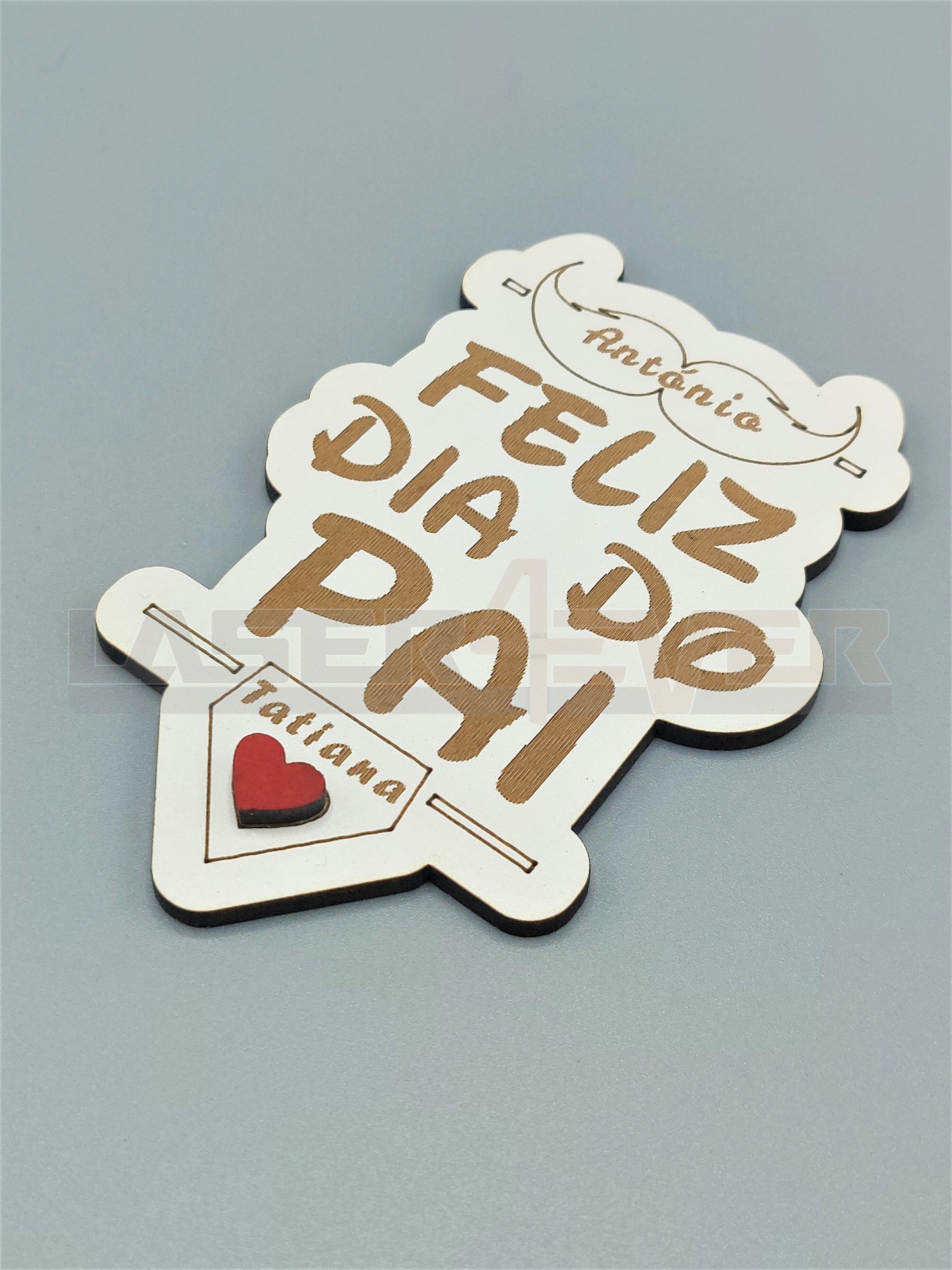 Placa "Feliz dia do Pai" em madeira com nomes personalizáveis e com Íman.
