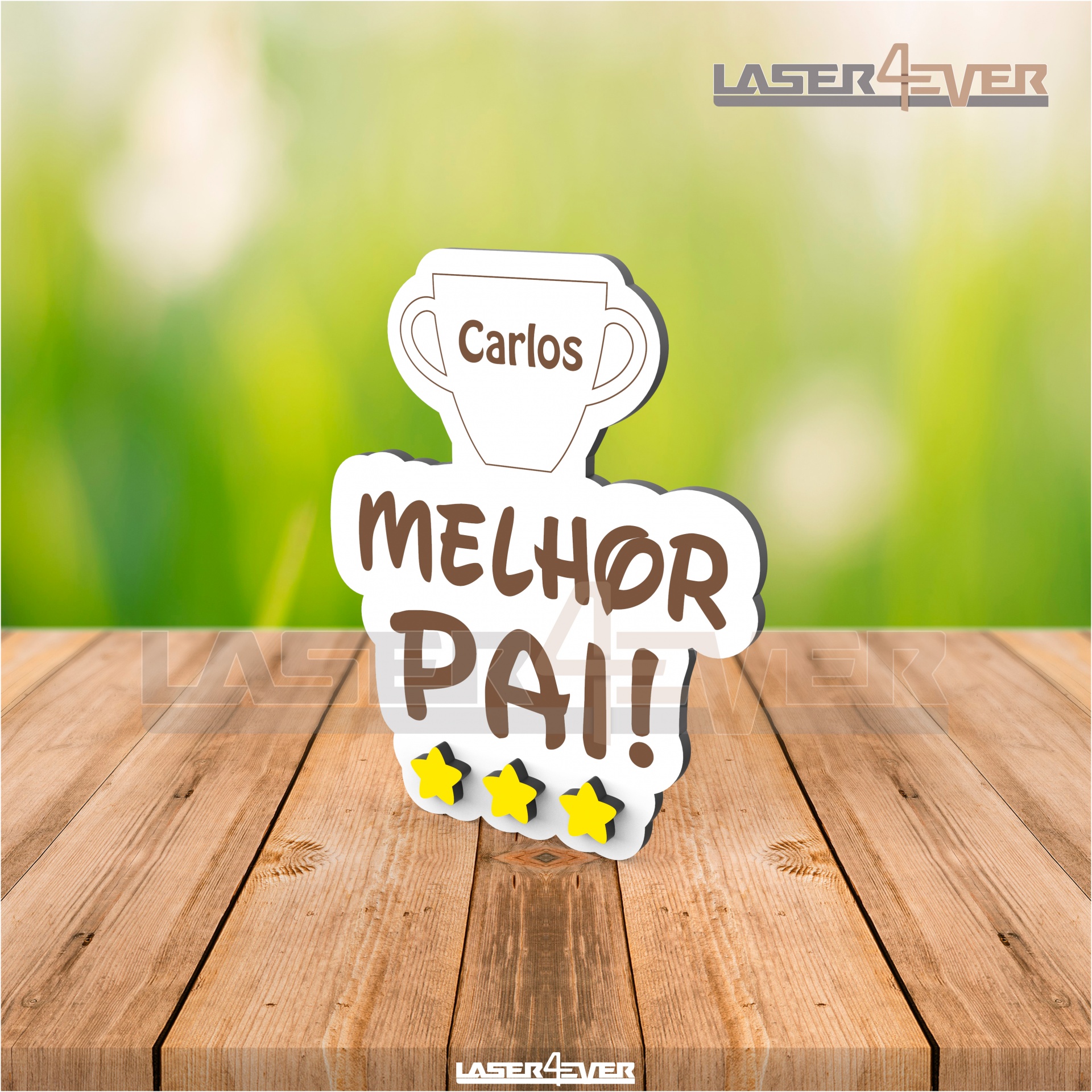 Placa "Melhor Pai" em madeira com nome personalizável, com Íman.