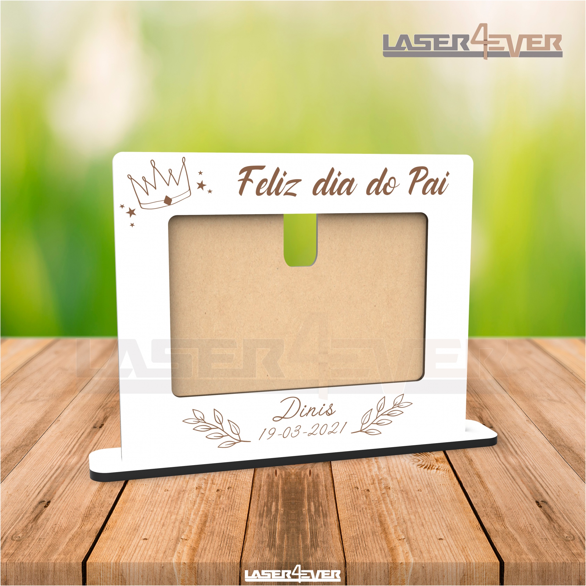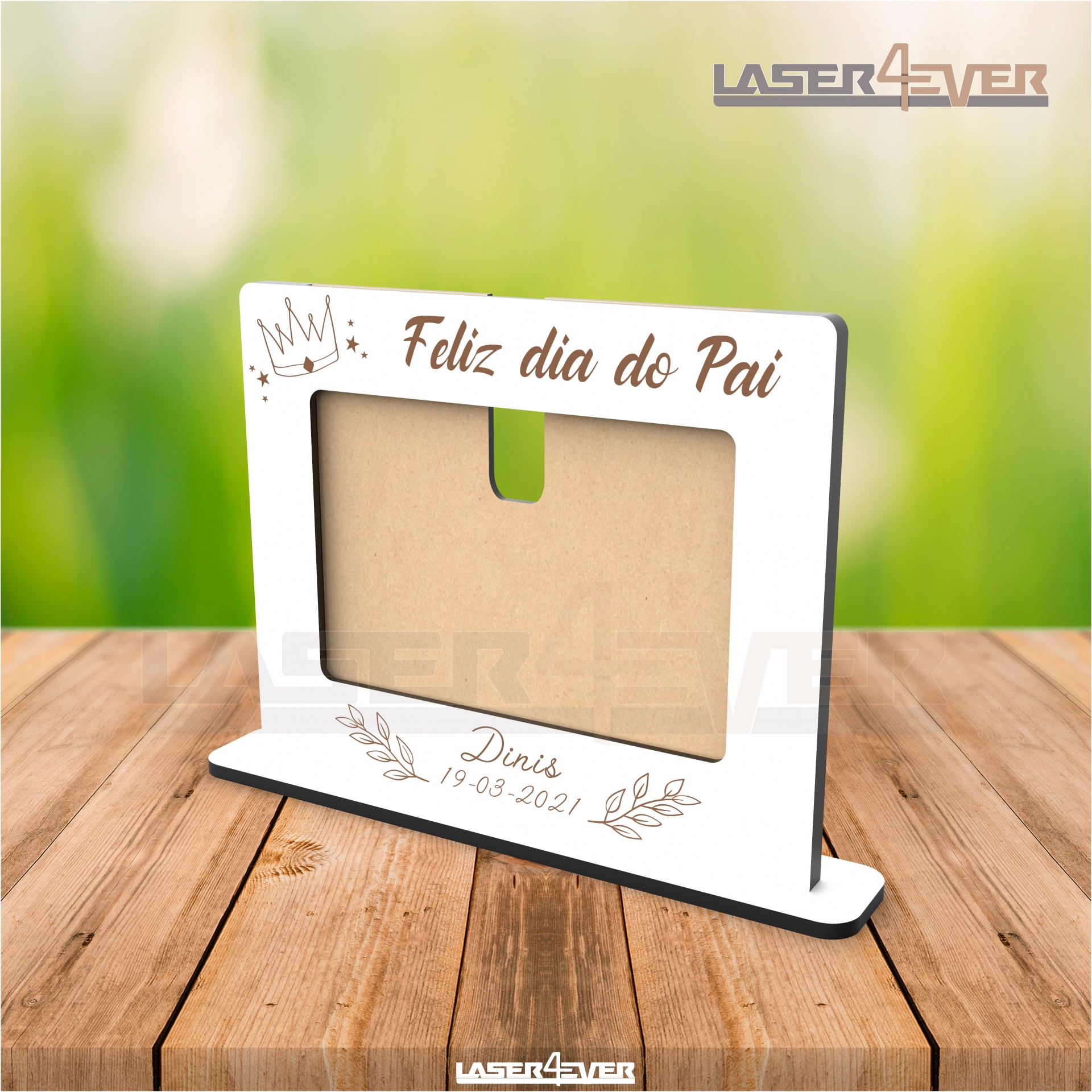 Uma moldura em madeira com nome personalizável. Uma peça única para tornar o dia do Pai ainda mais especial e com a foto mais especial de todas!