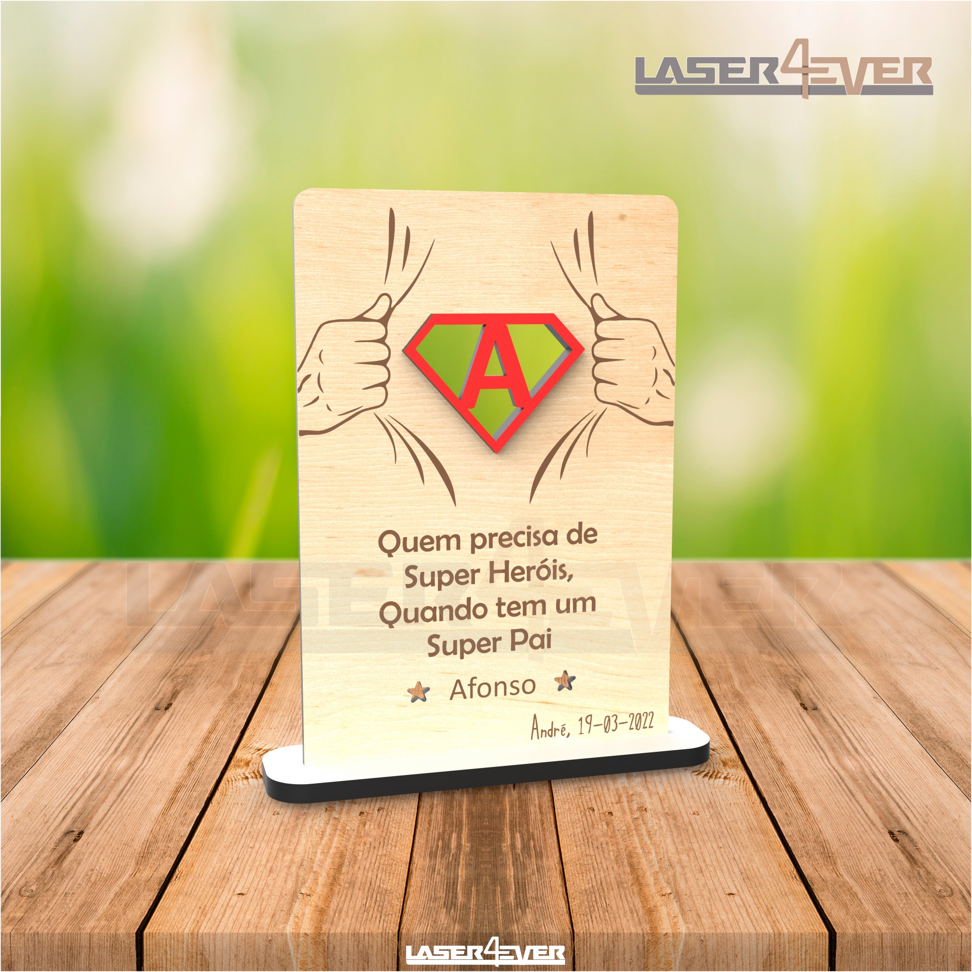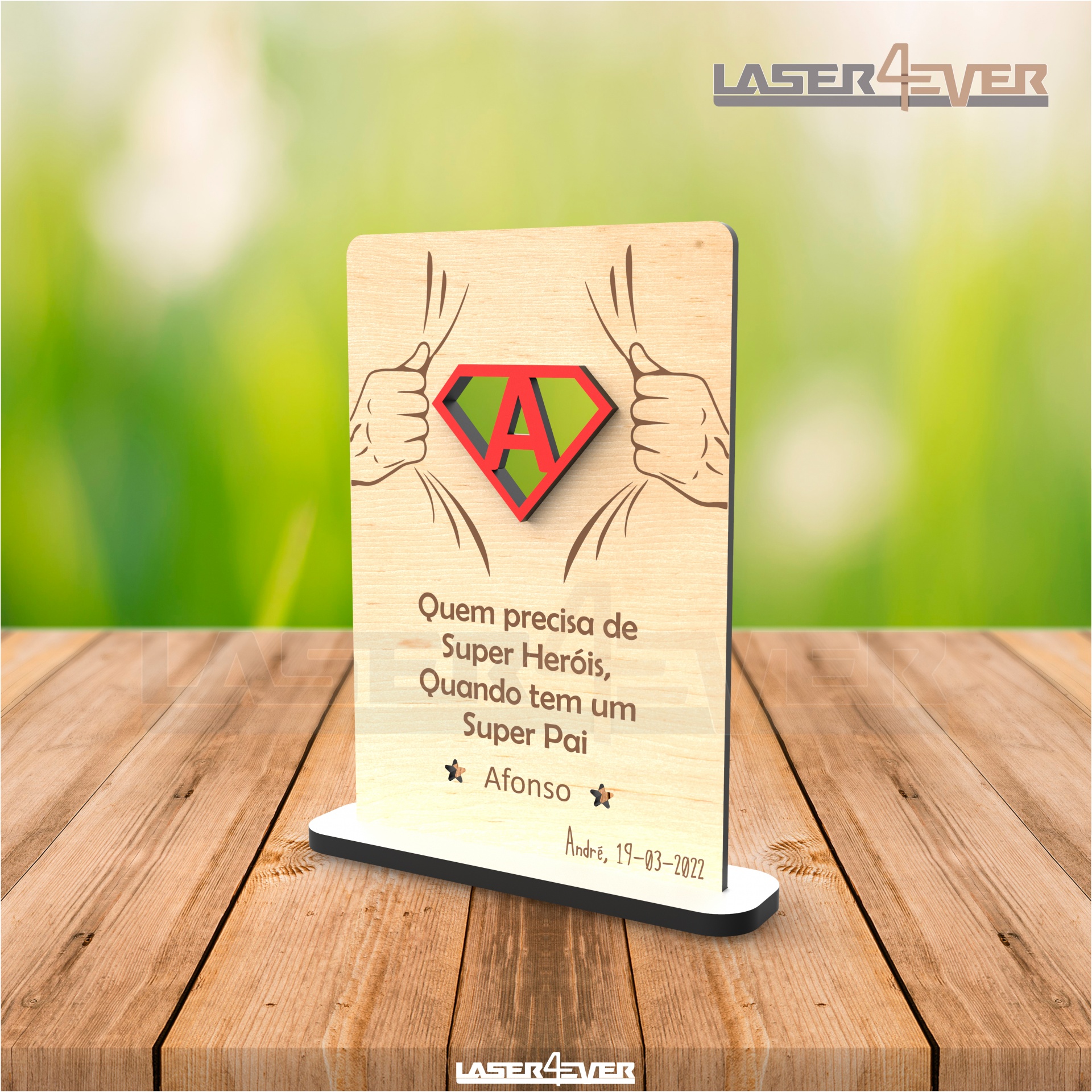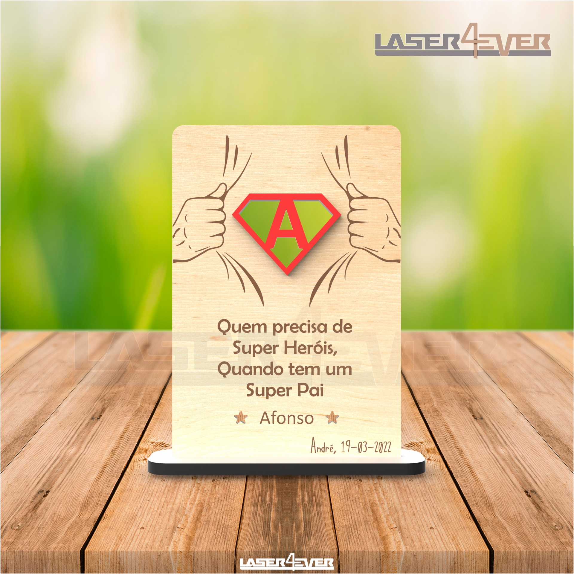Placa Super Heróis Super Pai - Inicial Nome e Data Personalizáveis