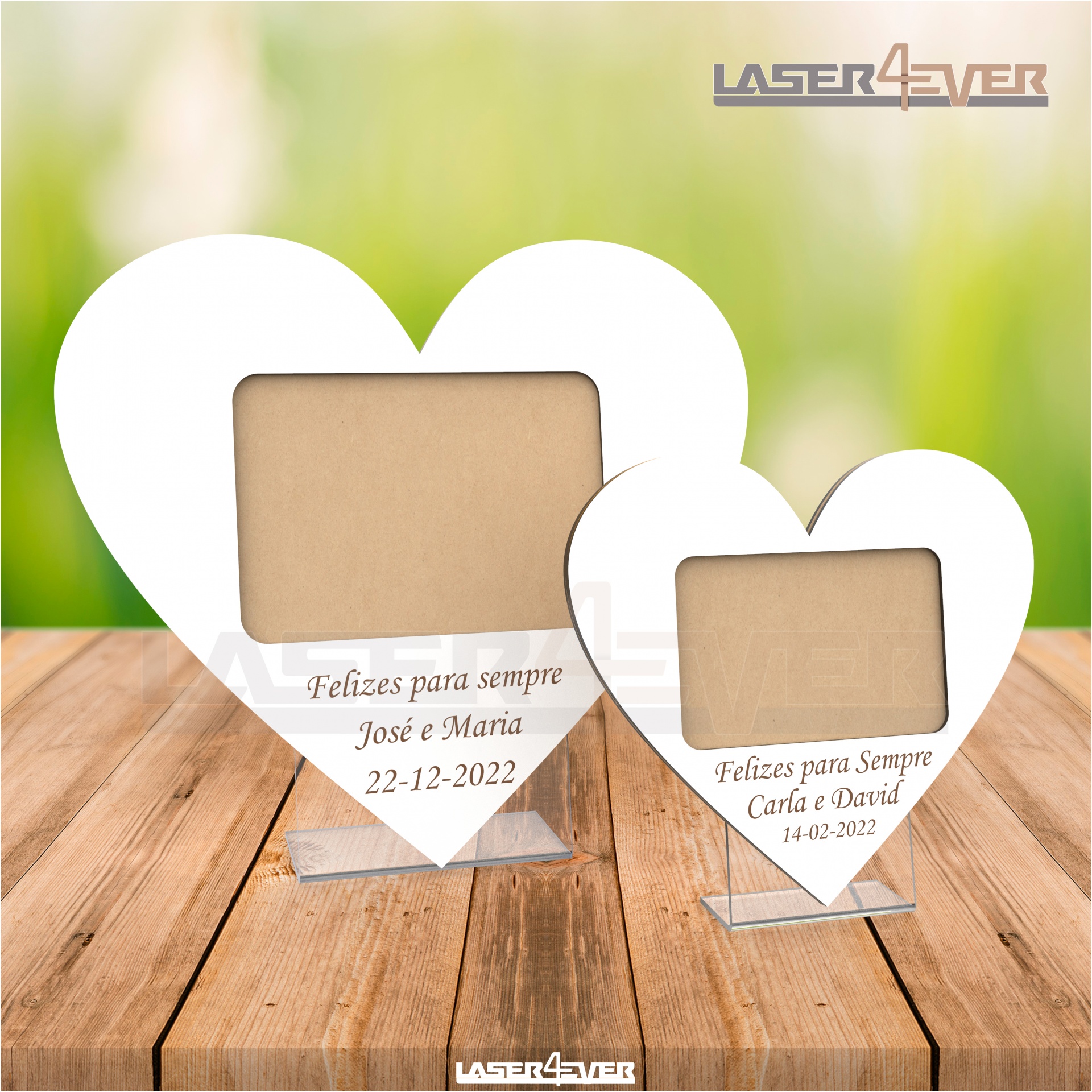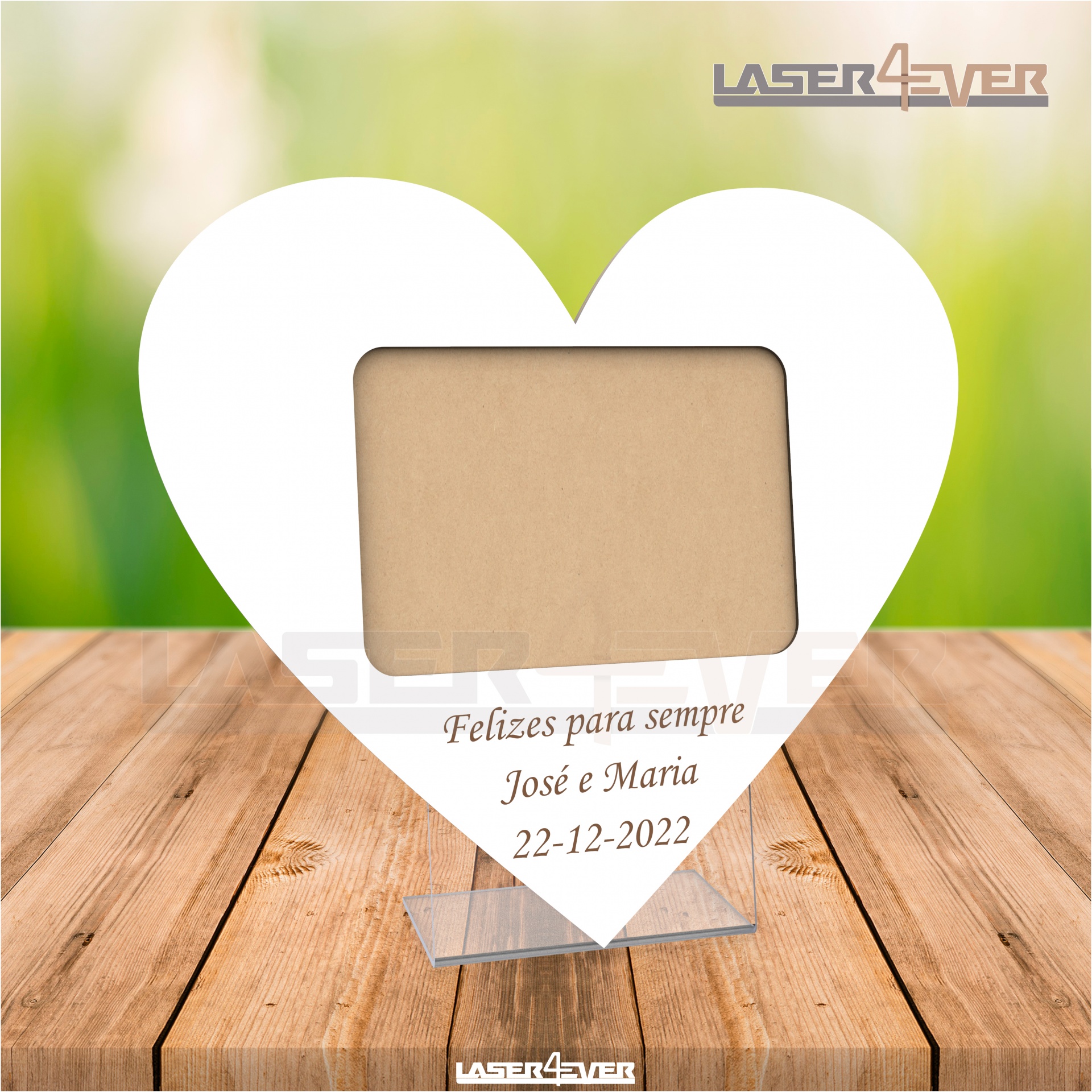 Texto a personalizar: Frase (máximo 25 caracteres); Nomes; Data.