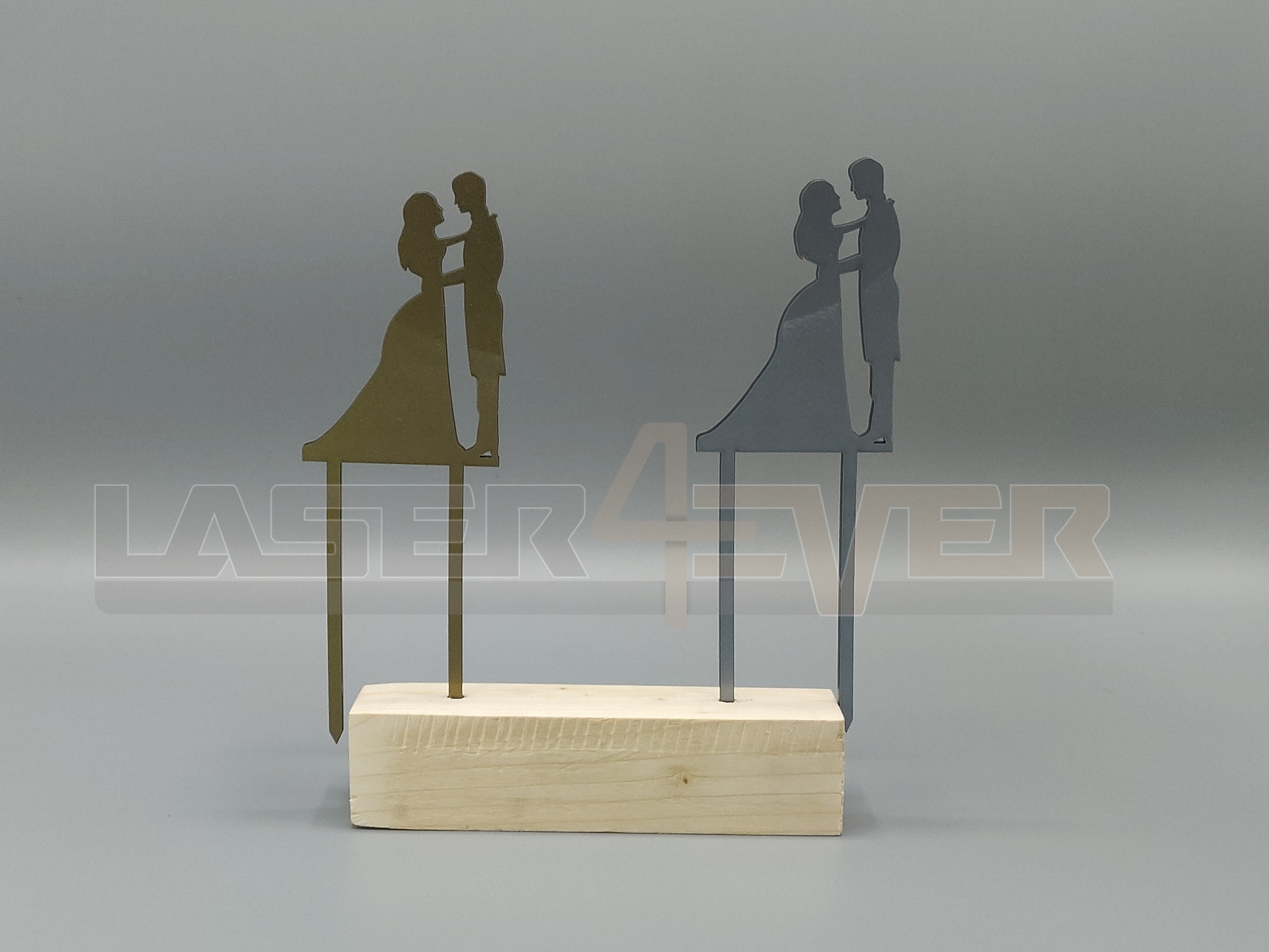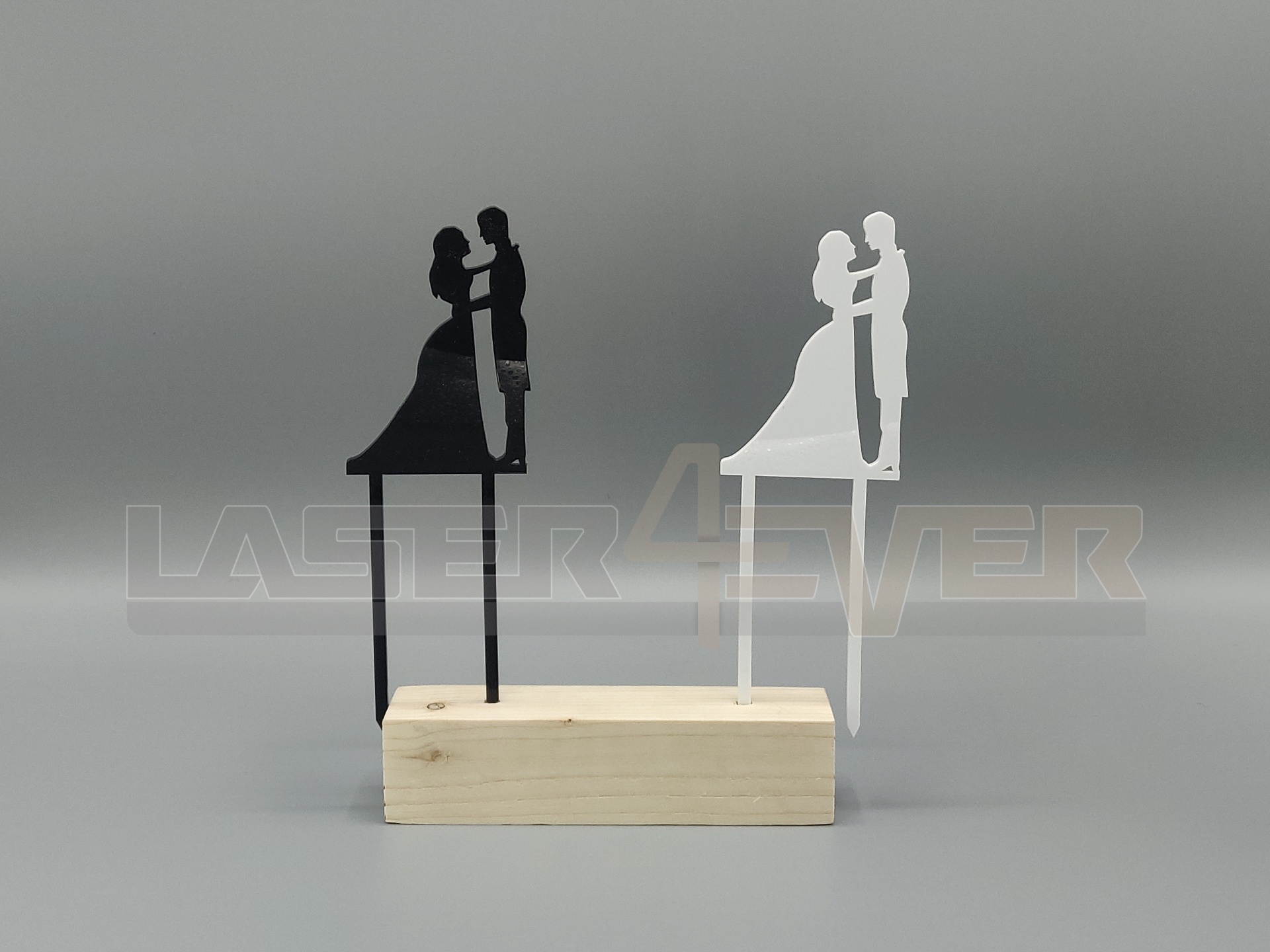 Este topo de bolo está disponível em Madeira ou Acrílico.