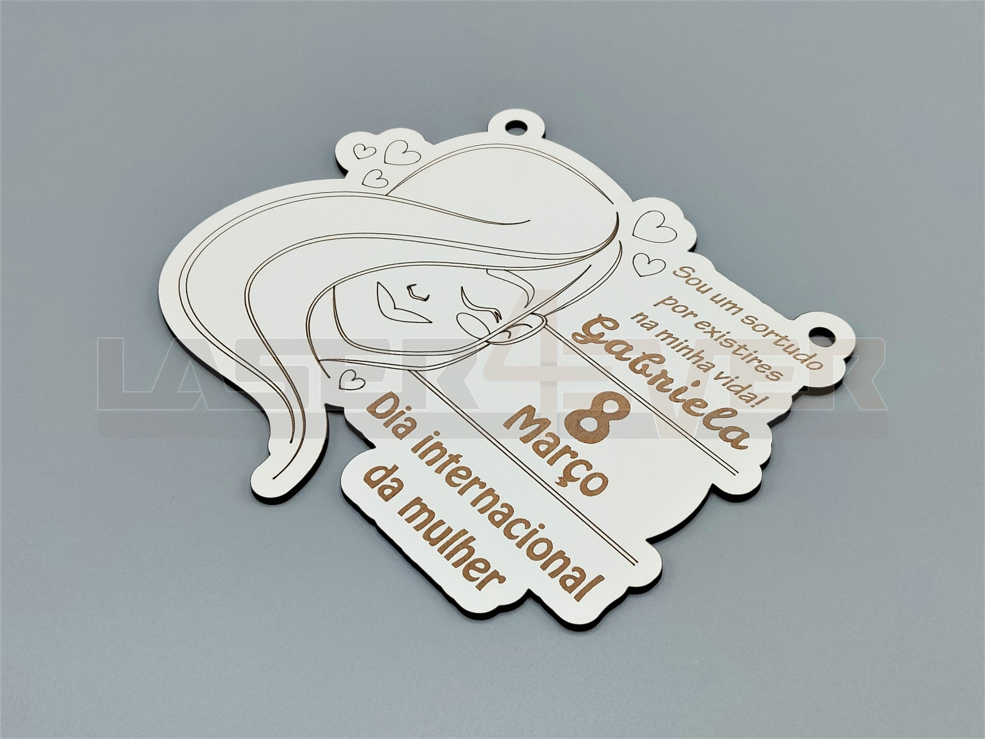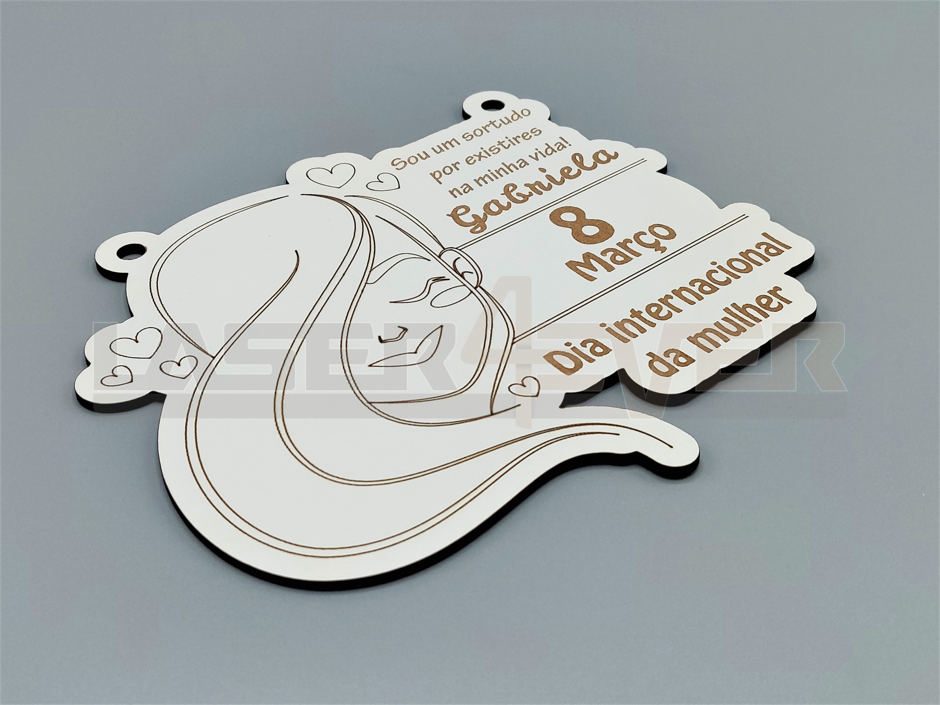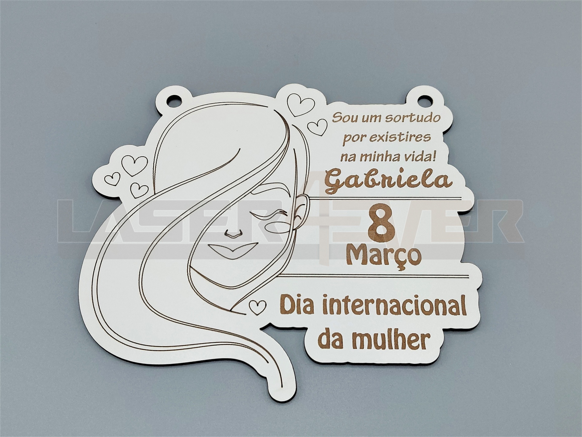 Placa Dia Internacional da Mulher em madeira com nome personalizável.