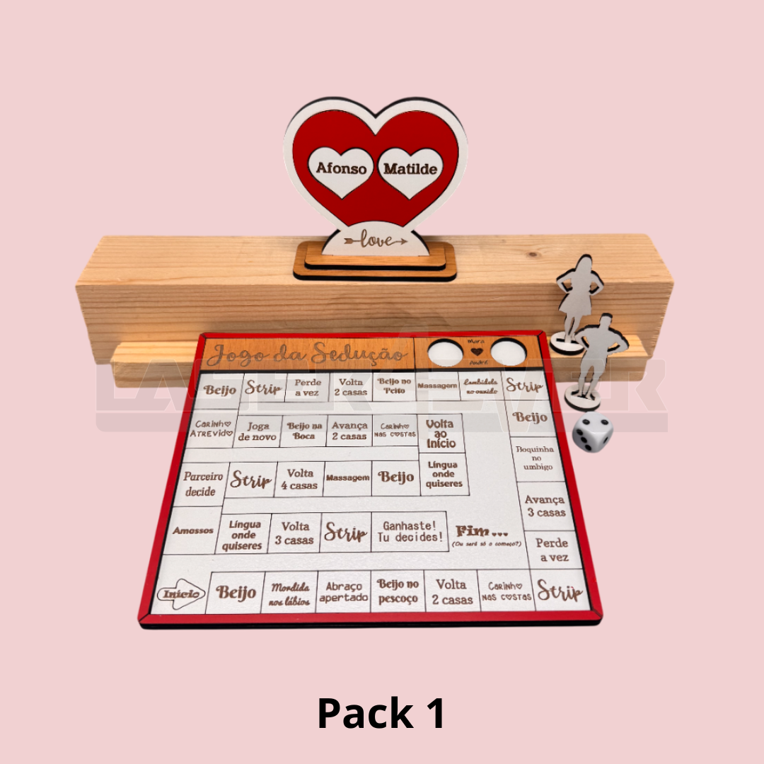 Home Dia dos Namorados Pack Dia dos Namorados Pack Dia dos Namorados SKU: L4R9000_1 Escolhe o teu Pack: Pack 1 Pack 2 Pack 3 35,00 € Desconto de %. IVA incluído. Comprar Contactar Adicionar à wishlist Oferta dos Portes de Envio Pack Dia dos Namorados | Jogo Casal + Placa namorados com nomes personalizados Neste pack inclui um tabuleiro jogo da sedução + um dos nossos modelos de placa namorados. (1 Jogo + 1 Placa à escolha). Um jogo divertido para casais, cheio de amor e paixão, que irá tornar o seu dia de São Valentim ainda mais intenso. Surpreenda e seja surpreendido/a. Na personalização indique o seguinte: (Indique a personalização na caixa de texto antes de adicionar ao carrinho) Nomes Dado Incluído. Dimensões do jogo: 20cm x 17cm Dimensões das placas aproxidamente: 10 a 12cm Material: MDF (madeira) Marca Laser4ever Partilhar