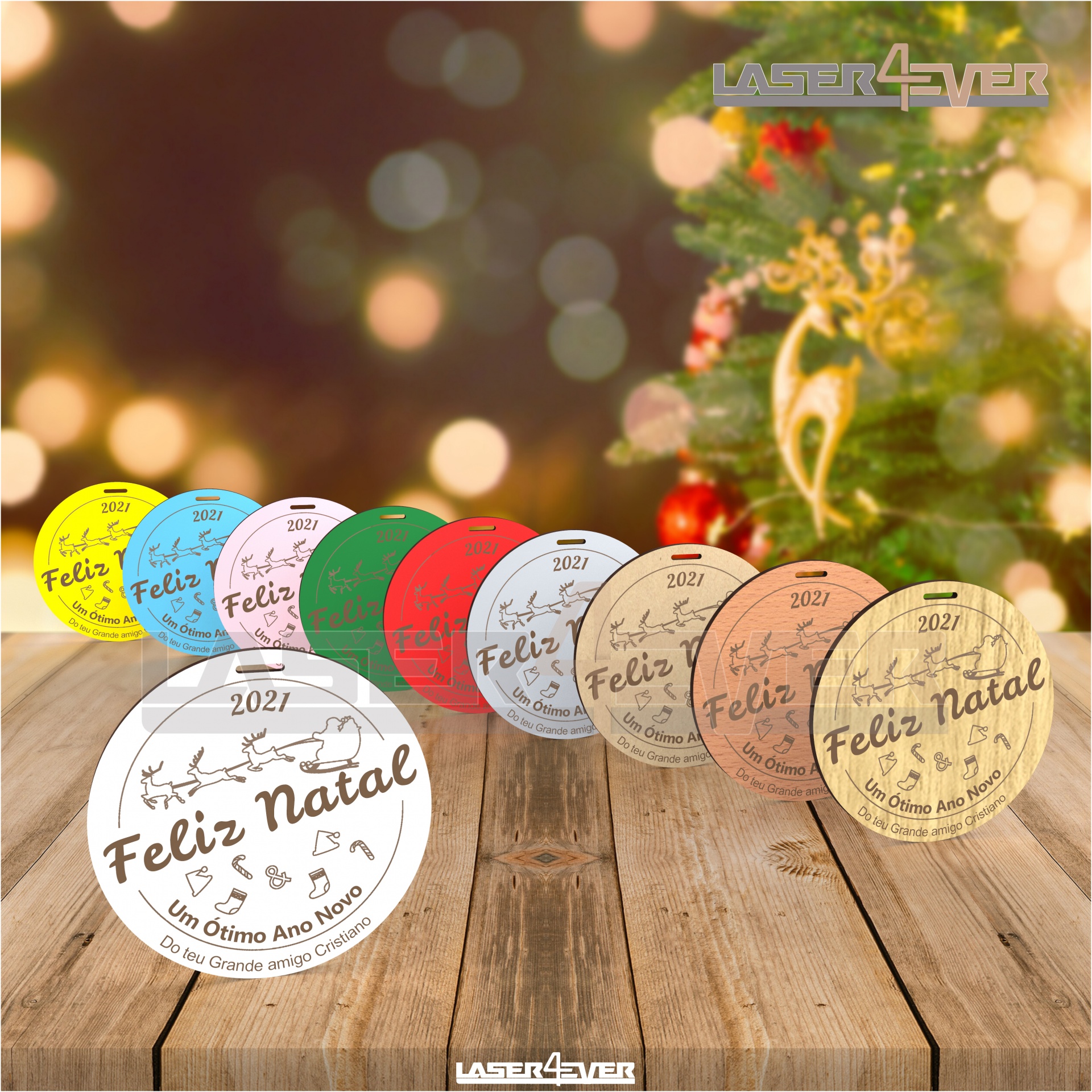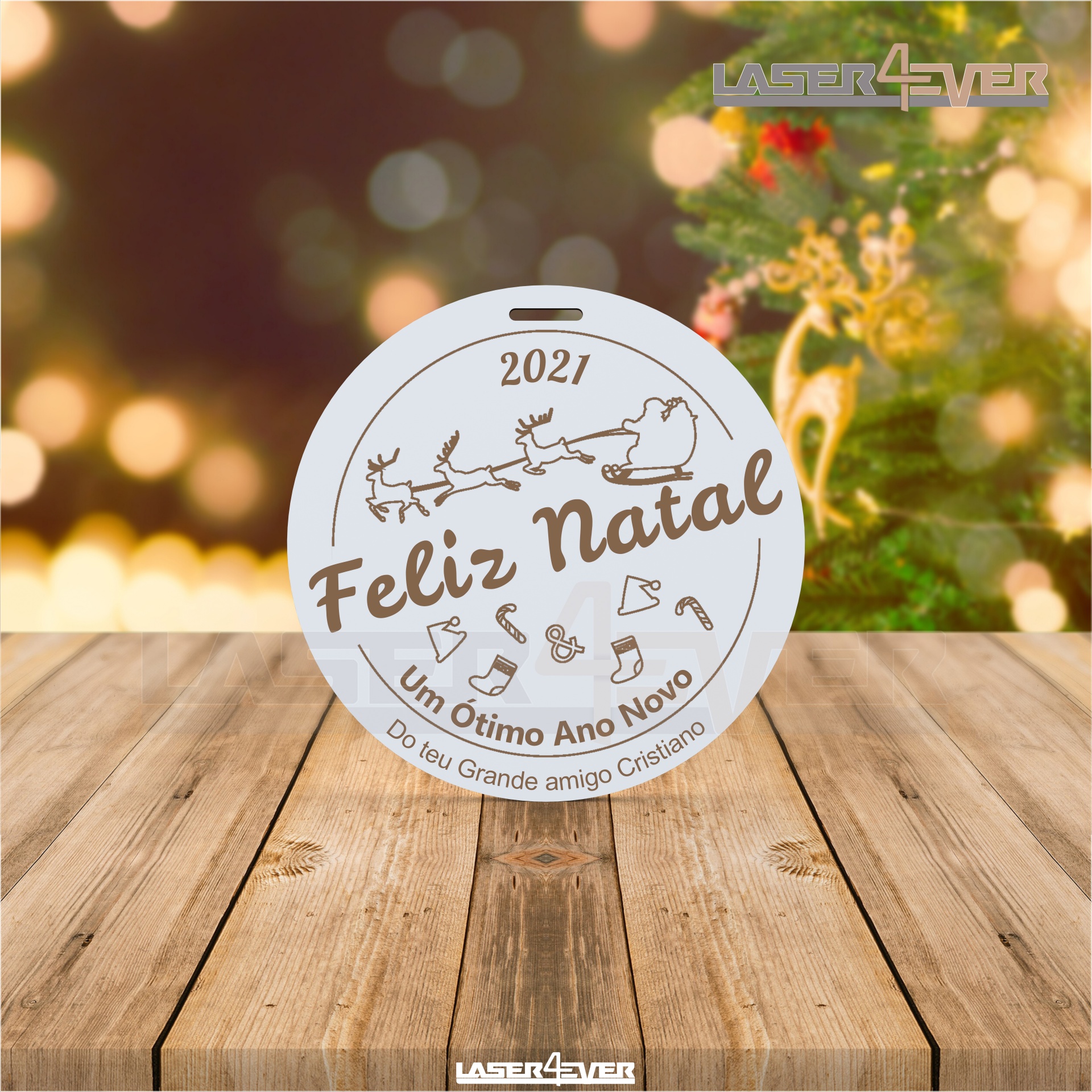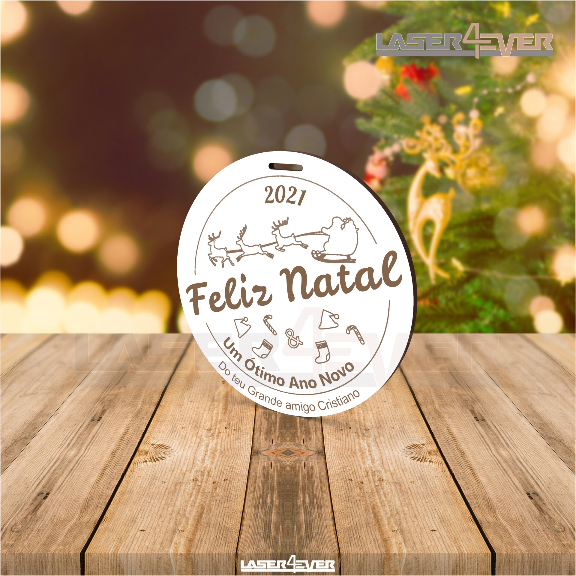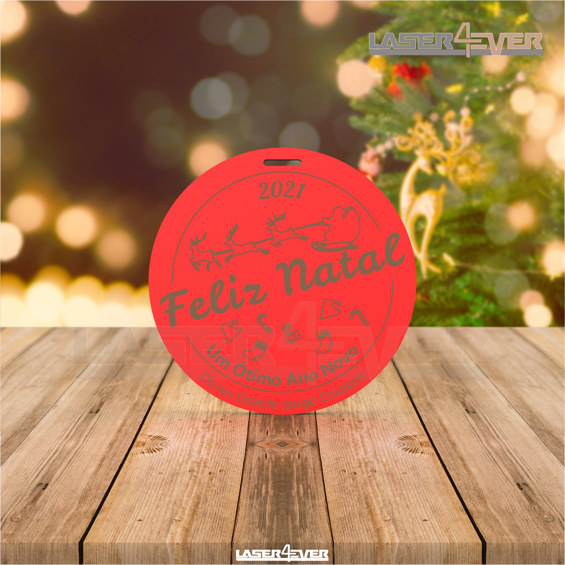 Mini Placa de Natal - Formato redondo, com nome e ano personalizado.