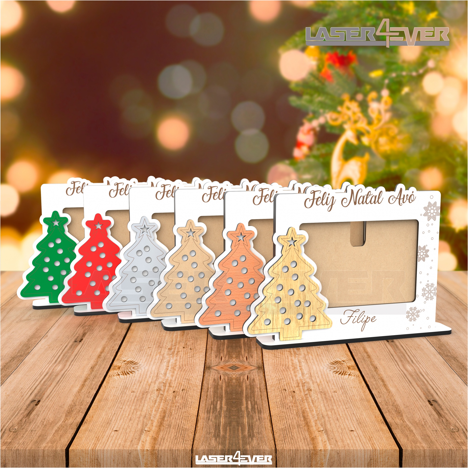 Árvore de Natal em Carvalho, Faia, MDF, Cinza, Vermelho ou Verde para um detalhe especial.