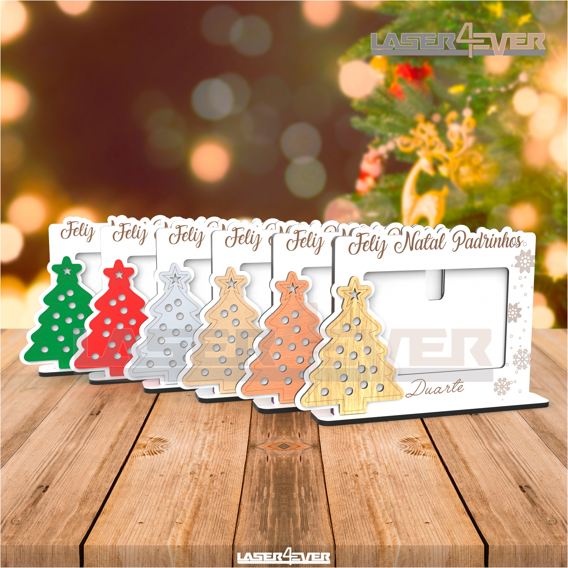 Árvore de Natal em Carvalho, Faia, MDF, Cinza, Vermelho ou Verde para um detalhe especial.