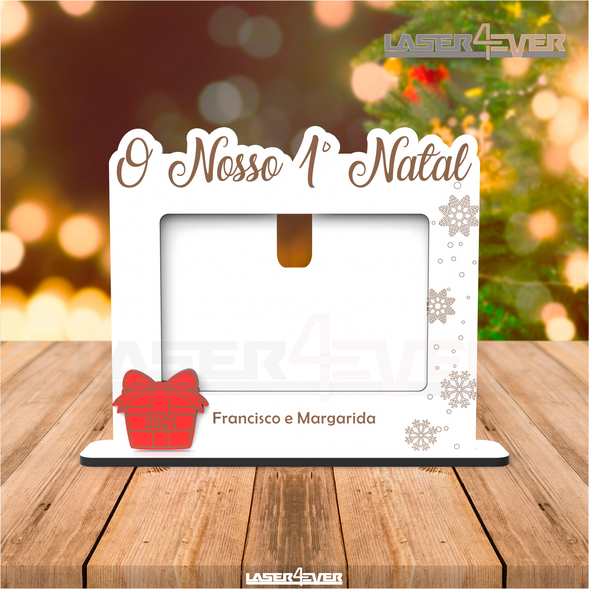 Moldura - O nosso Primeiro Natal - Nomes e Ano Personalizado