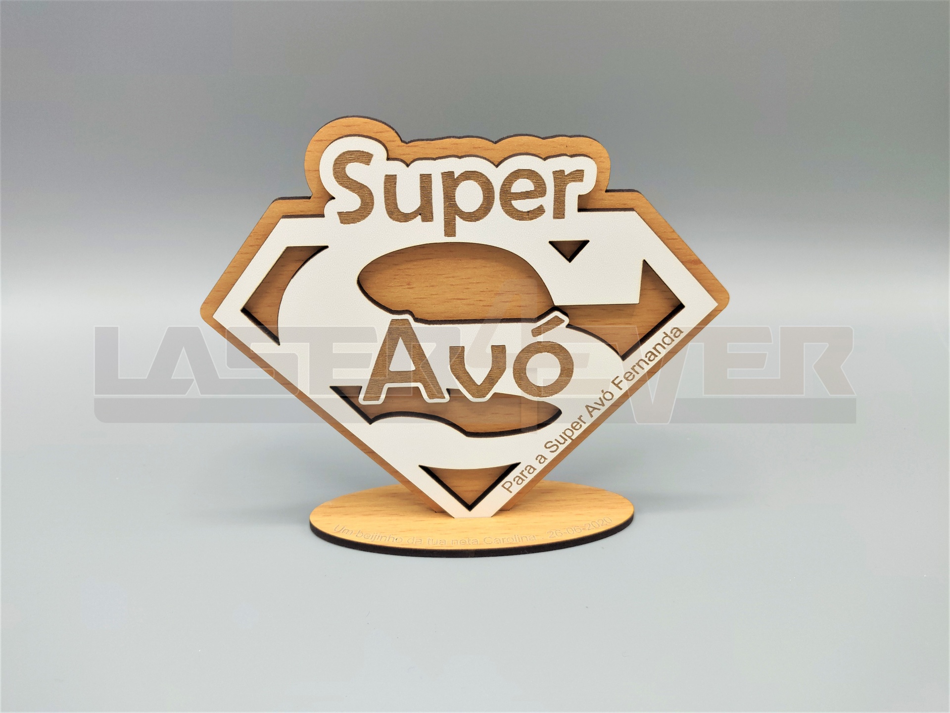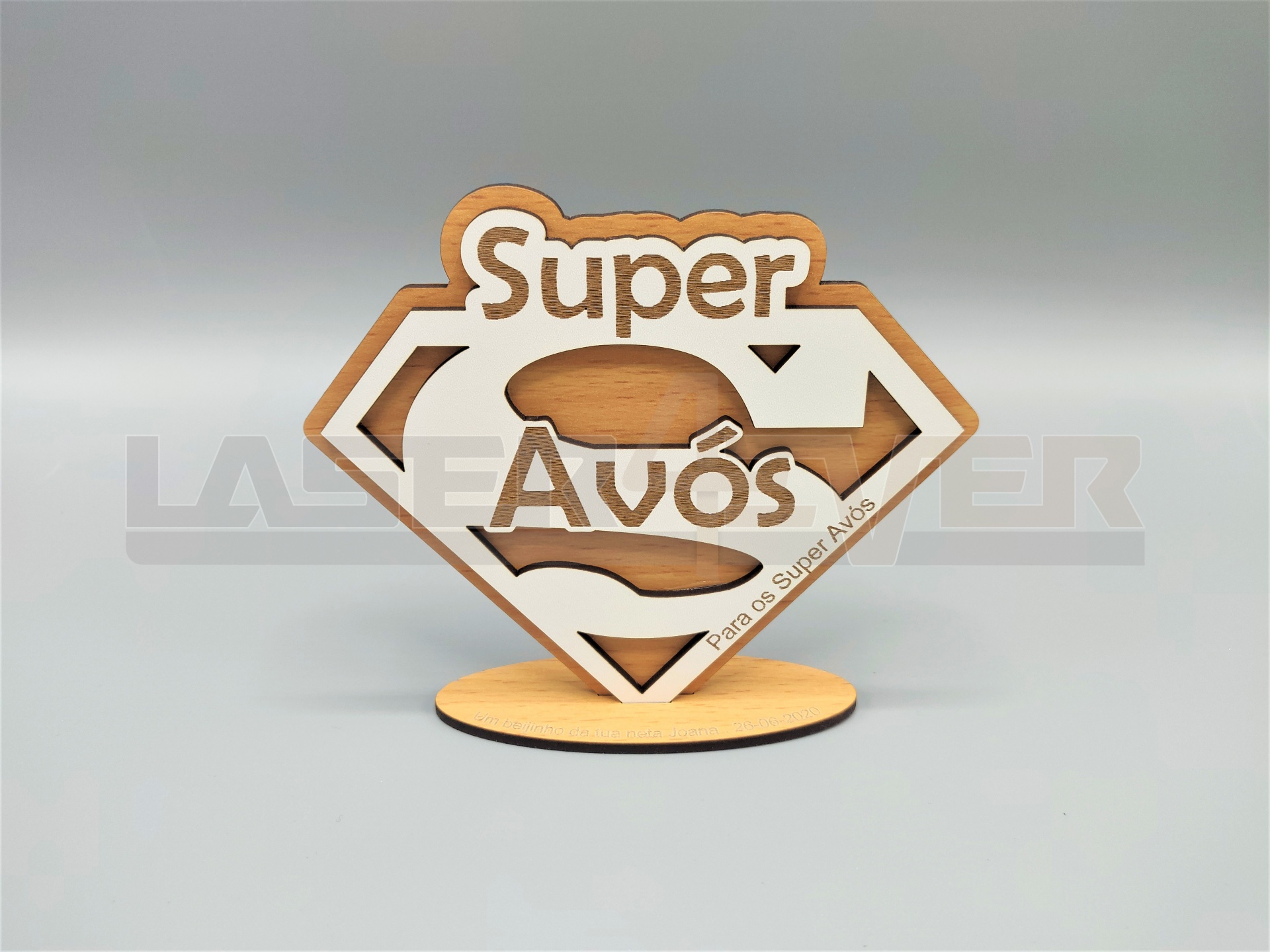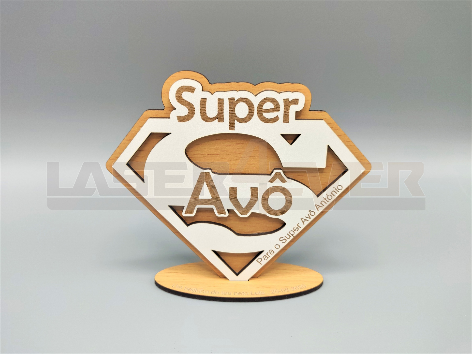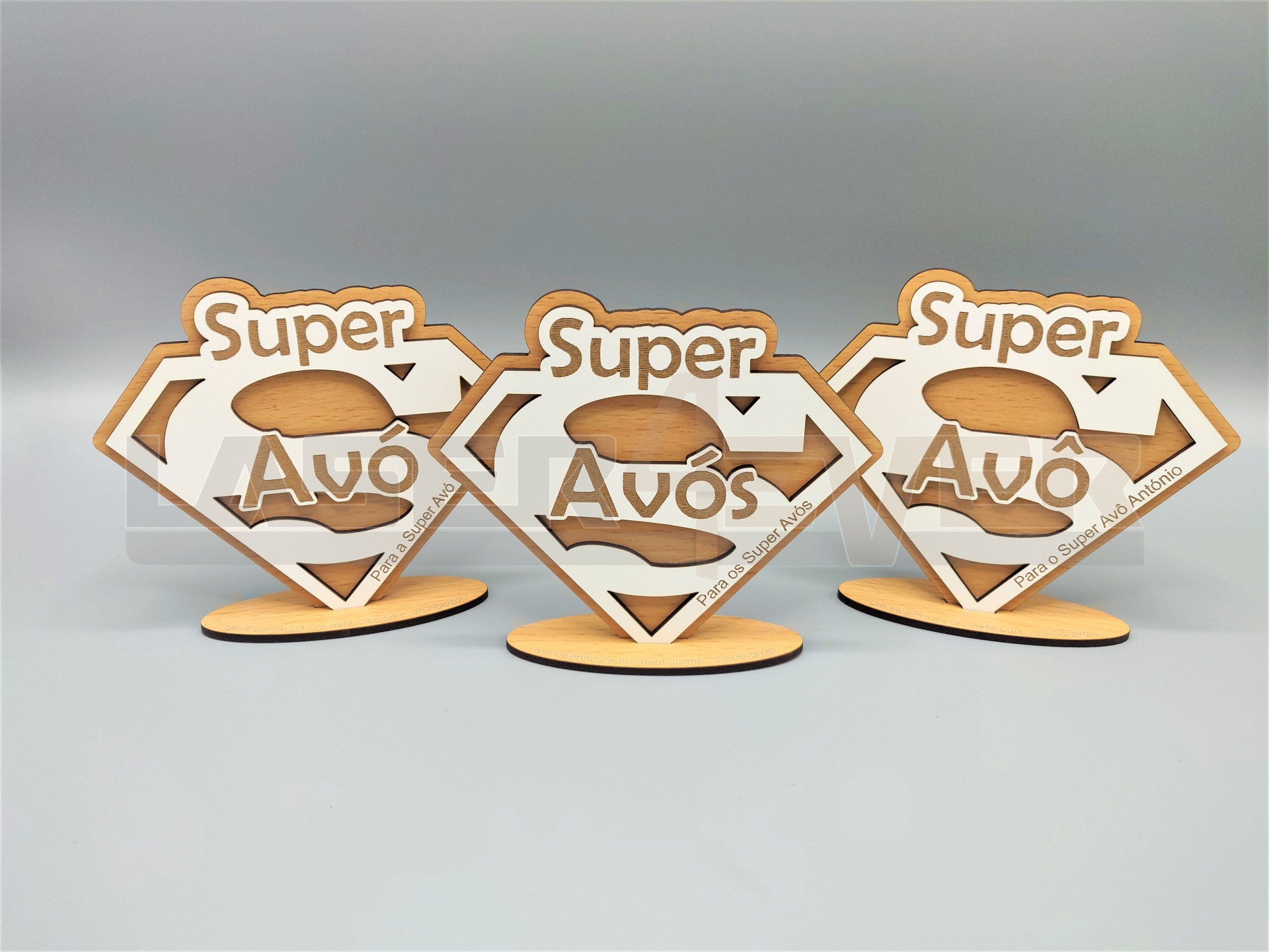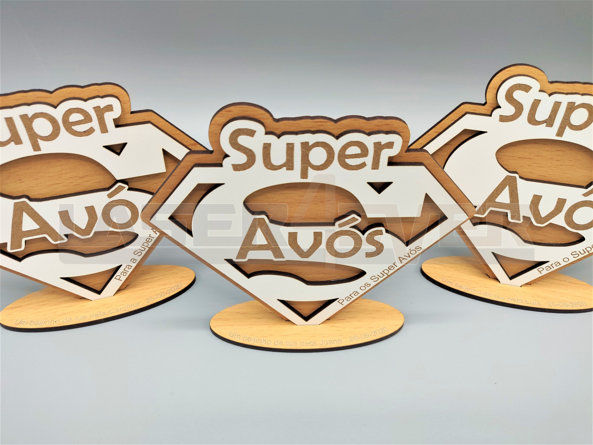 Placa Super Avós, em madeira com nome e data personalizáveis.