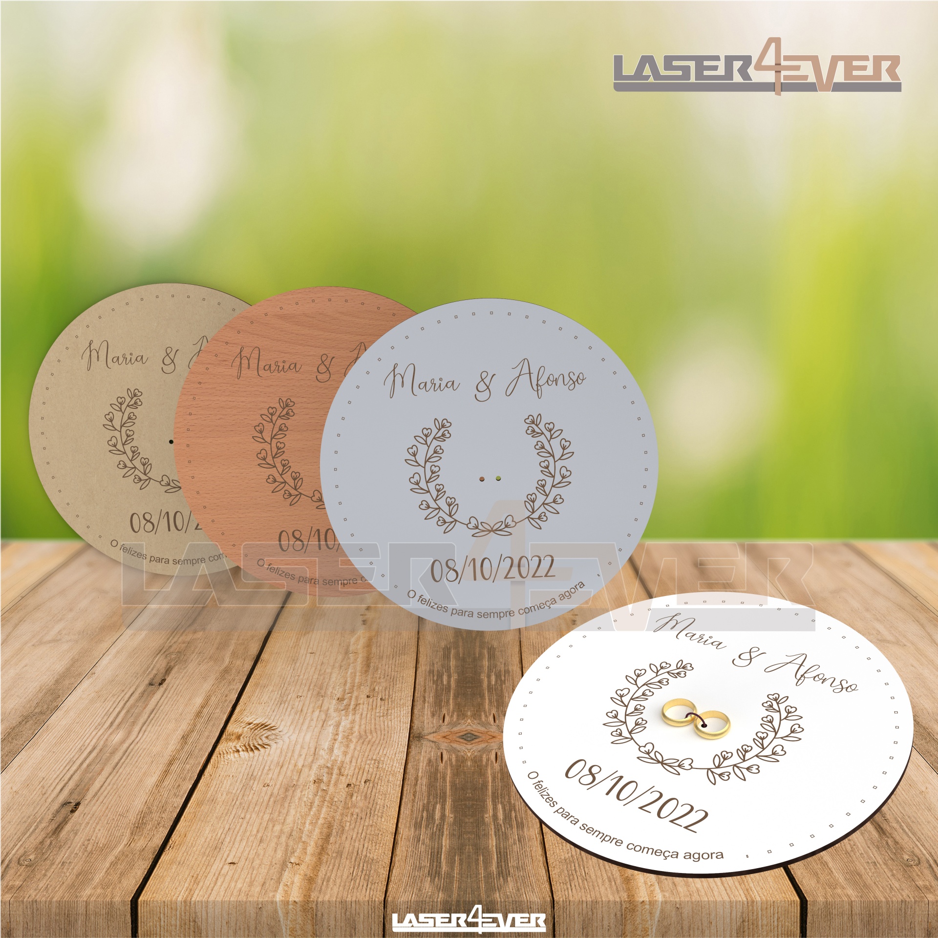 Porta Alianças com nomes e data personalizável.