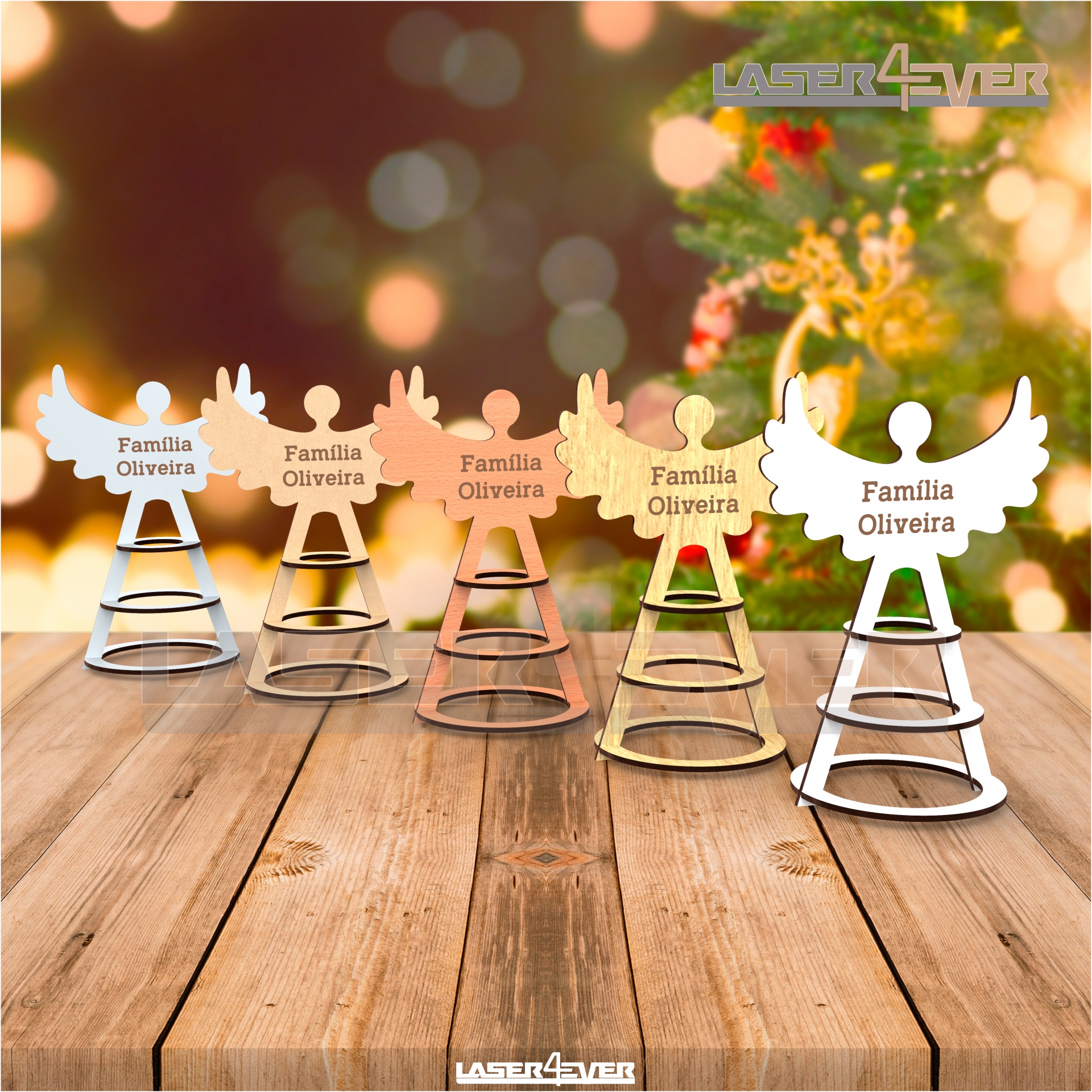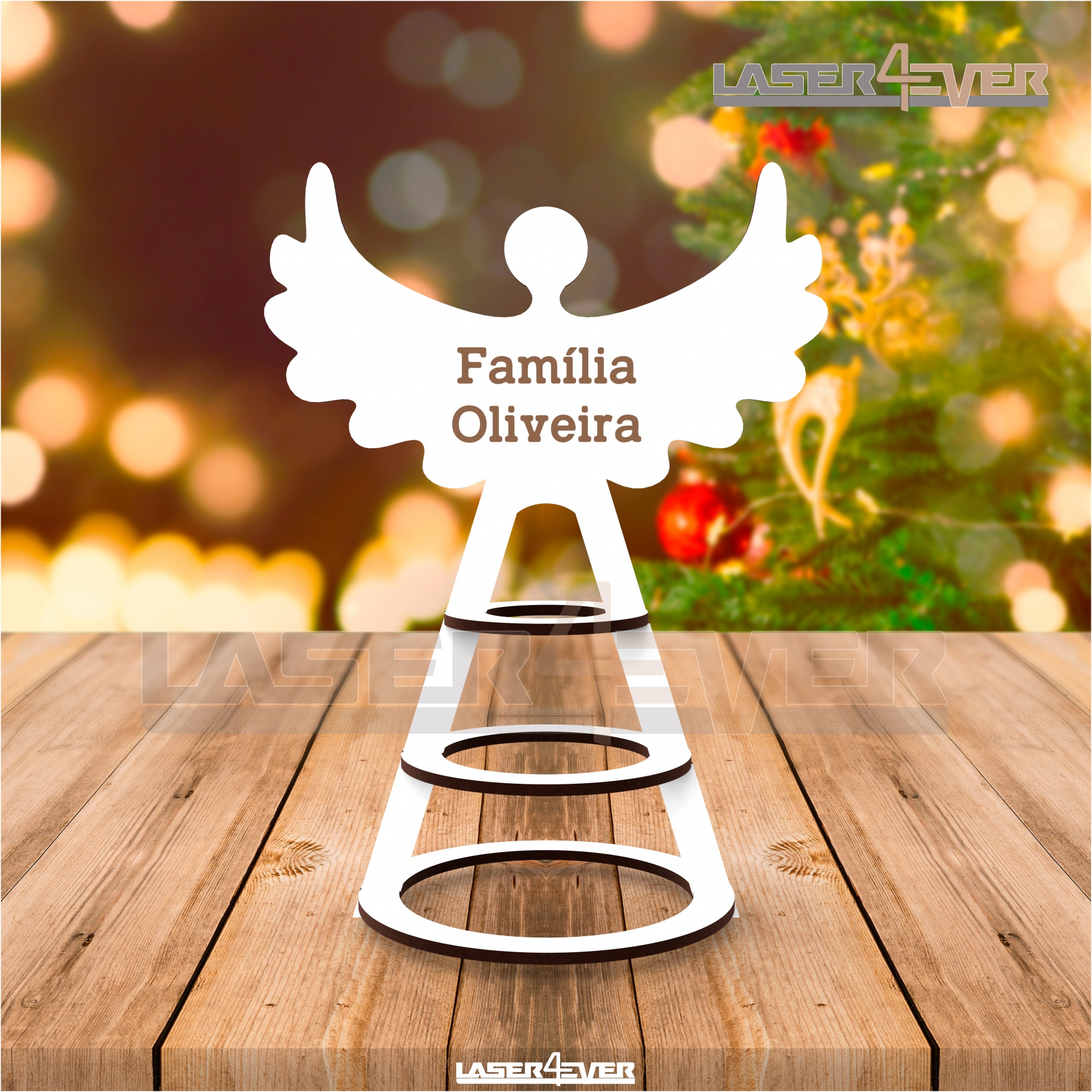 Topo de Árvore Anjo com o nome personalizado em MDF e Acrílico.