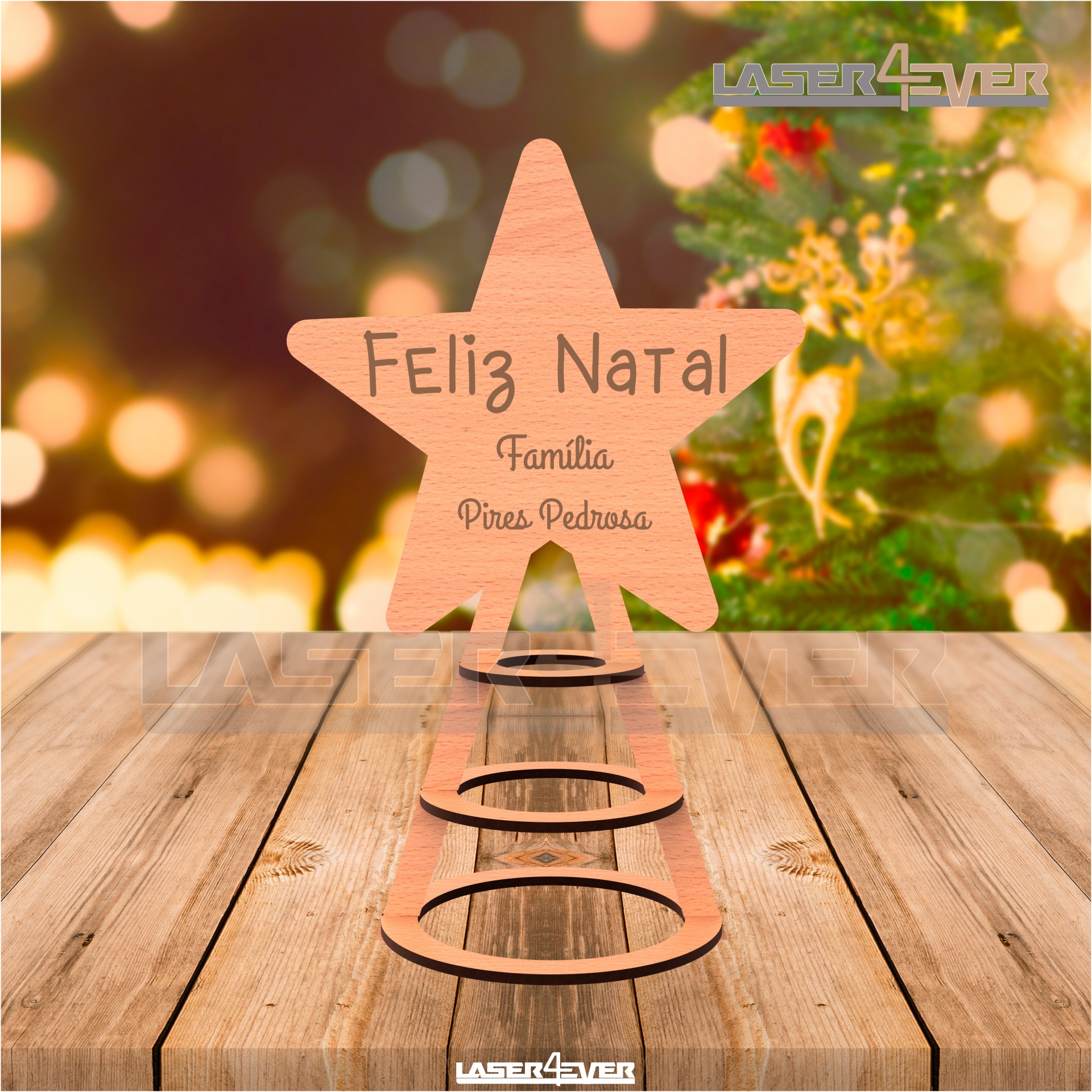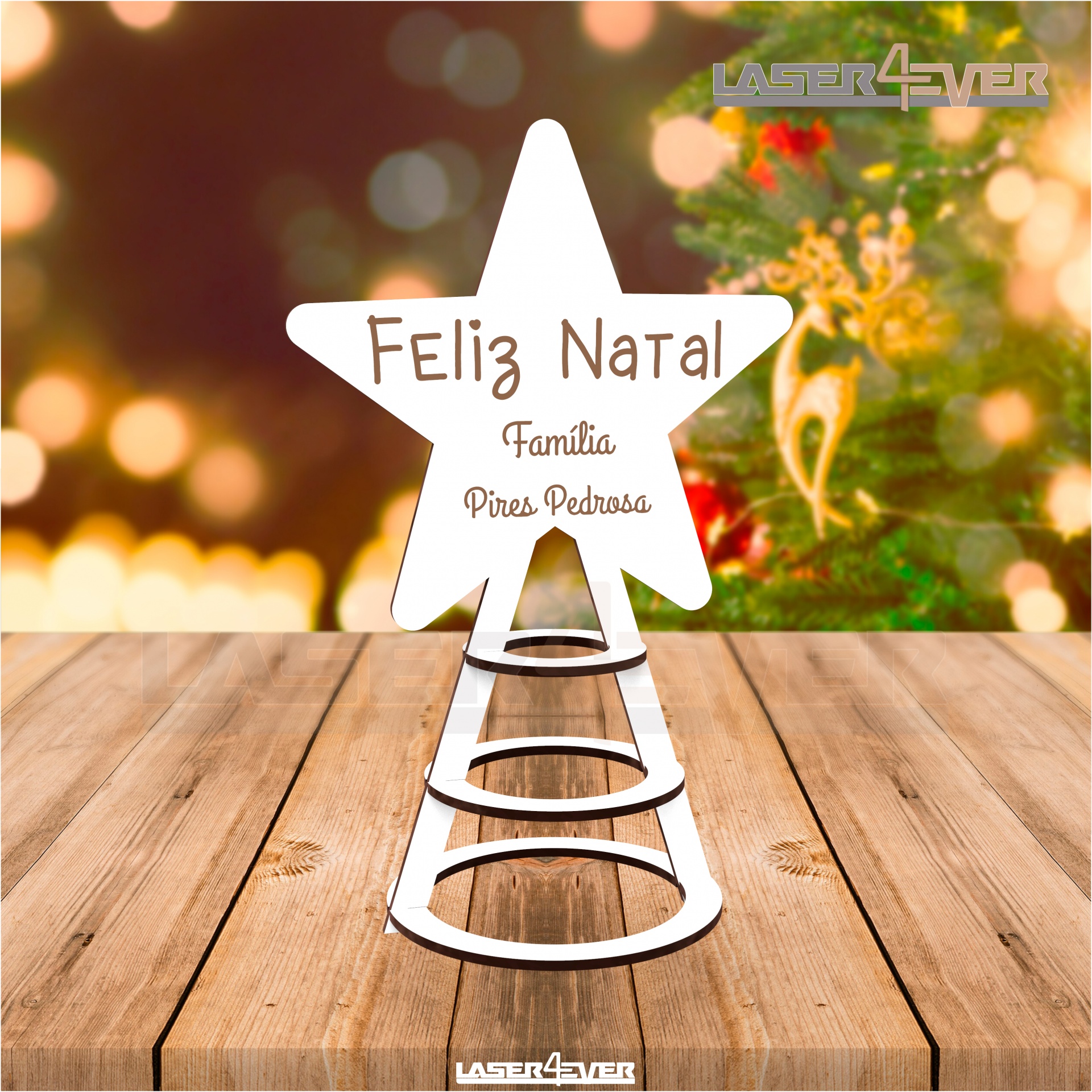 Topo de Árvore Estrela com o nome personalizado em MDF ou Acrílico.